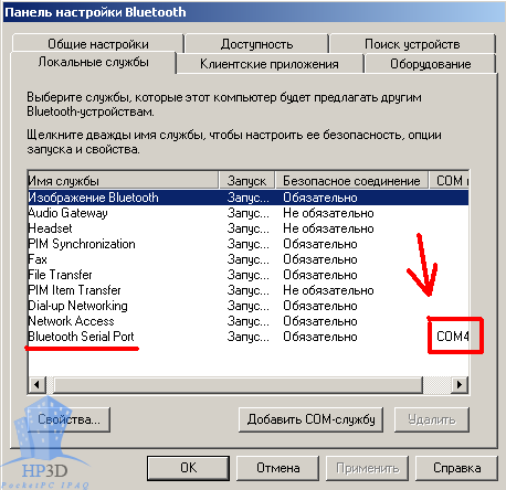 5.4 Далее необходимо настроить ActiveSync на большом компьютере для работы по Bluetooth. Для этого необходимо зайти в Файл >> Параметры подключения >> поставить галочку "Разрешить подключения по следующим объектам" и выбрать порт COM4 (у вас он может отличаться) который мы увидели в свойствах Bluetooth в предыдущем пункте.
