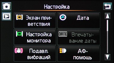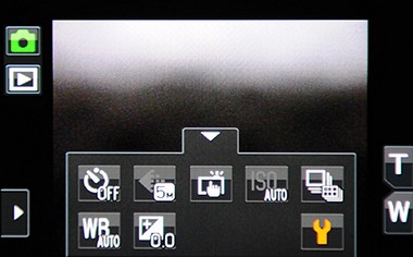 У камеры есть быстрое меню. Оно вызывается нажатием на стрелки в нижней части экрана и слева.