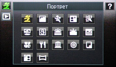 Мультикадр – делает последовательно 16 кадров за две секунды и склеивает их в одну фотографию, разрешением 5 Мп. Забавная штука. Но, чистой воды баловство. ![]() - Сюжетный режим Вы выбираете режим наиболее подходящий под условия съёмки. Набор из 17 сюжетов.