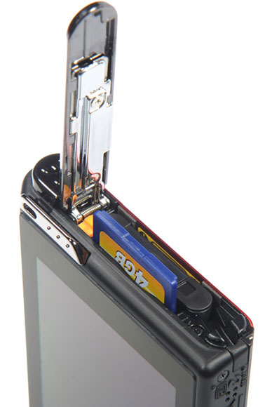 Аккумулятор вместе со слотом для карты памяти находится в правой части аппарата. При этом закрыты они внушительного размера крышкой – сдвигается практически вся грань. Крепление выглядит надёжным. Пожалуй, даже надёжнее, чем у конкурентов.