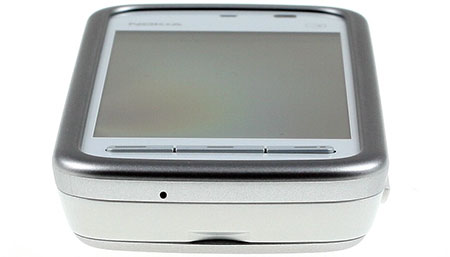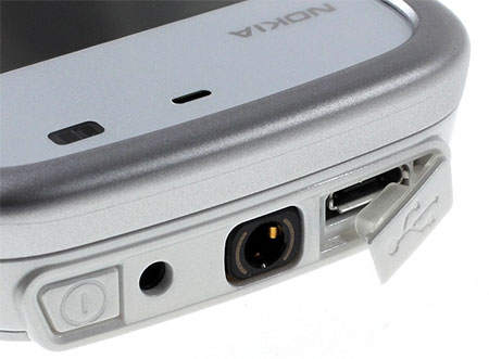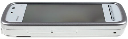 Верхний торец Nokia 5230 изобилует всяческими элементами. Тут вам и порт MicroUSB под заглушкой, и разъем для зарядного устройства, и стандартный 3,5 миллиметровый аудиоджек, и кнопка включения. ![]()