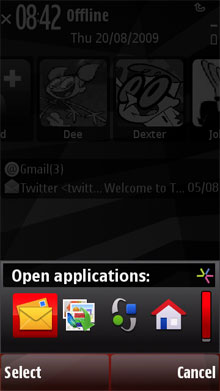 видеоплеер, галерею изображений, Ovi Share и WEB-браузер. При необходимости в Nokia 5230 можно вызвать Диспетчер задач. Делается это путем нажатия и удержания кнопки меню (средняя, под экраном). Как и раньше, он «всплывает» поверх всех окон в нижней части экрана. Поскольку кнопка «С» не предусмотрена, управление приложениями осуществляется следующим образом: вы нажимаете на нужную иконку, а затем выбираете одно из предложенных телефоном действий: открыть или закрыть. ![]()