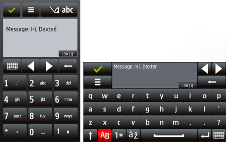 интервалы времени. Здесь стоит также упомянуть о такой немаловажной для удобства пользования редактором сообщений вещи, как клавиатура. В вертикальном положении телефон предлагает использовать стандартную «телефонную» (алфавитно-цифровую) клавиатуру. При повороте в пейзажное состояние, клавиатура автоматически меняется на QWERTY. ![]()