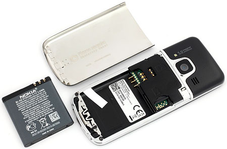 Под задней стальной крышкой скрываются слоты для карты памяти MicroSD и для SIM-карты, и, конечно же, литий-ионный аккумулятор BL-6Q емкостью 960 мАч. Поскольку флэшка покоится не под батареей, а рядом, поддерживается «горячая» замена - без выключения телефона. ![]()