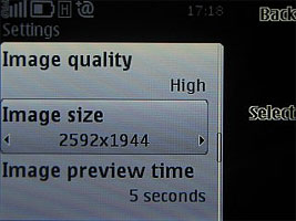 для S40 настройки камеры довольно ограничены: баланс белого, три уровня
