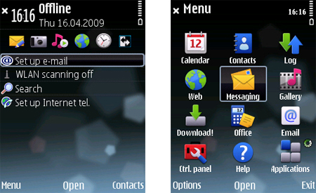 Меню Nokia E52 можно просматривать в двух режимах - как сетку три на четыре или списком. Анимированные иконки недоступны, но шрифт можно увеличивать. Как это типично для меню OS Symbian, возле запущенных в фоновом режиме приложений отображается небольшой кружочек, напоминающий, что надо их закрыть для того, чтобы система заработала быстрее. Хотя с таким мощным процессором вы можете запускать сколько угодно приложений, работа от этого не замедлится. ![]()