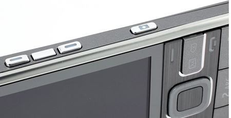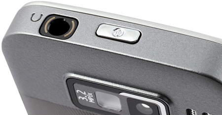 На торце Nokia E52 находятся 3,5-миллиметровый аудиоразъем и кнопка выключения. Компания Nokia иногда наделяет свои гаджеты крошечной кнопочкой Power, нажать которую непросто. Но на этот раз тенденция не подтвердилась - кнопка оптимальна по размеру и расположению на корпусе. ![]()