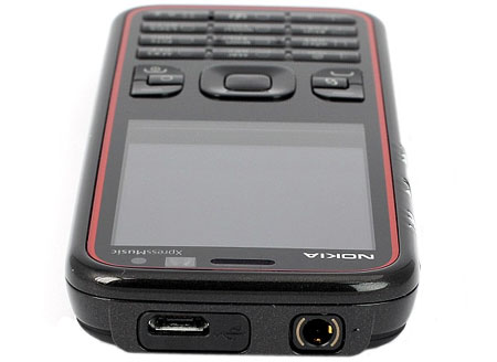 На верхнем торце Nokia 5630 XpressMusic находится 3,5-миллиметровый аудиоразъем и порт microUSB, а также небольшой светодиодный индикатор, который загорается при подключении телефона к компьютеру или зарядному устройству. ![]() ![]()