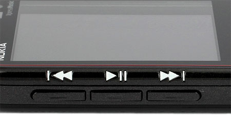 На левом ребре расположились кнопки управления плеером. Они очень тонкие, и тактильная отдача у них не самая лучшая. Но у этих клавиш все же есть одно достоинство - при низком освещении они загораются ярким белым светом. Тут же, слева, можно найти ушко для шнурка. ![]() ![]()