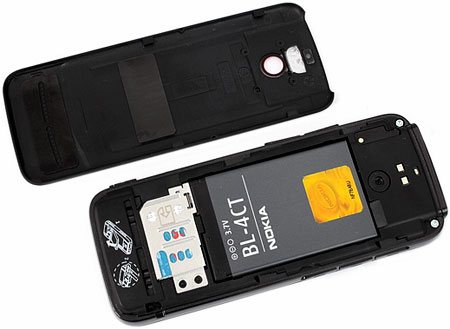 Под крышкой обнаруживаются литий-ионный аккумулятор BL-4CT емкостью 860 мАч и слот для SIM-карты. Благодаря удобному металлическому «кармашку» менять симки легко и просто. ![]()
