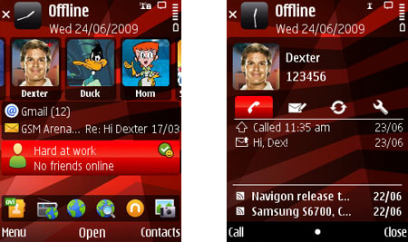 Nokia 5630 XpressMusic собран на совесть. Во время тестирования никаких скрипов и люфтов замечено не было. Пластиковая крышка со стороны выглядит не слишком презентабельно, но телефон и не претендует на бизнес-класс. К тому же, наличие металлических частей ощутимо сказалось бы на весе аппарата. А вот боковые кнопки могли бы быть и поподатливей. Nokia 5630 XpressMusic работает на базе второго релиза операционной системы Symbian 9.3 S60 3rd Edition со всеми свойственными ему изменениями. Самая серьезная (и лучшая) перемена заключается в появлении режима Contact Bar. В верхней части экрана располагается полоса, в которую можно внести до 20 избранных контактов, каждый из которых будет отображаться в виде имени и фотографии. Экран может показывать одновременно только три контакта, но по списку можно «ходить» вправо и влево. При выборе одного из контактов на экран выводится информация обо всем вашем с ним общении - звонках, сообщениях, RSS, а также меню настроек.