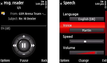 временные интервалы. Поразительно, но Nokia 5630 XpressMusic с его небольшим экраном может открывать даже некоторые вложенные файлы Microsoft Office, причем с довольно высокой скоростью. Есть возможность прослушать письмо. Оно может быть озвучено мужским или женским голосом - на выбор, если захочется разнообразия, можно загрузить и другие голоса. Эта функция работает просто отлично: мало того, что вслух было верно прочитано энное количество трудных слов, так еще и URL не заставил виртуального оратора запнуться. ![]()
