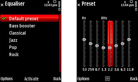 Сортировка композиций возможна по альбому, исполнителю, жанру или композитору. Также можно воспользоваться поиском дорожки путем постепенного ввода ее названия. В плеере предусмотрено пять пресетов эквалайзера, если они чем-то не угодят, можно создать новые или внести желаемые изменения в уже существующие. ![]()