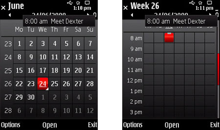 Благодаря большому объему оперативной памяти, даже самые тяжелые WEB-страницы загружаются быстро (если сравнивать со многими другими смартфонами). Но экран! Как ни крути, он слишком мал. 2 дюйма - это мелкий шрифт, небольшие картинки и слишком ограниченное количество текста, которое может поместиться на дисплее. Управленческие навыки Nokia 5630, как и большинства других аппаратов на базе Symbian, находятся на высоте. А вот приложений на удивление целая масса. Начнем изучать все это богатство по традиции с календаря. Он может отображаться помесячно, понедельно или подневно. В нем можно создавать четыре разных типа пометок: встреча, памятка, годовщина и список дел. На каждое событие отводится свое индивидуальное поле. ![]()