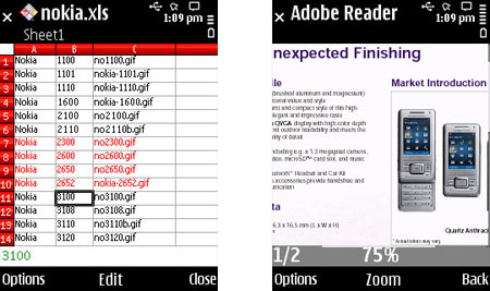 Мобильный офис содержит приложения, позволяющие просматривать файлы Word, Excel, PowerPoint и PDF. Жаль только, редактирование не поддерживается, но мы особо и не рассчитывали. Зато есть программка Zip Manager, которая, как не сложно догадаться, распаковывает заархивированные файлы. ![]()