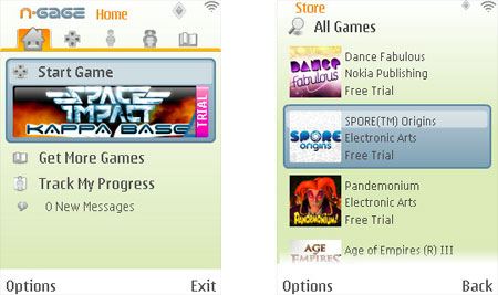 удалять. Игры. Приятным сюрпризом для игроманов станет поддержка Nokia 5630 XpressMusic платформы N-Gage. Изначально в телефоне предустановлено несколько игр. Правда, только в виде демо-версий. Одна игра активируется бесплатно. А чтобы получить неограниченный доступ к остальным, необходимо ввести платный код. Новые игры можно скачивать в неограниченном количестве, но за определенную сумму. ![]()
