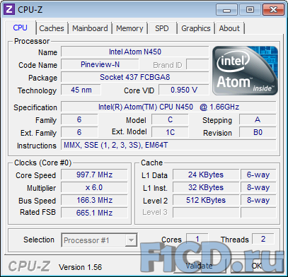 Технические характеристики Acer Aspire One HappyВнутри нетбука трудится одноядерный процессор Intel Atom 450 с тактовой частотой 1,6 ГГц (впрочем, на рынке есть и модификация с более производительным двухъядерным решением Atom 550, пусть и с меньшей тактовой частотой – 1,5 ГГц). ![]() Также присуствует 1 Гбайт оперативной памяти DDR2-800 и жесткий диск объемом 250 Гбайт. ![]() Также CPU-Z показал и немного информации о самой платформе. ![]() Имеются как беспроводные модули WiFi и Bluetooth, так и проводное соединение через разъем LAN 10/100 Мбит/с. Звук воспроизводится через маленькие динамики снизу. ![]() Емкость аккумулятора составляет 4400 мАч при конструктивном исполнении из шести литий-ионных ячеек. ![]() Работу экрана диагональю 10,1" обеспечивает интегрированный видеоускоритель Intel GMA 3150, также поддерживается внешний выход VGA. ![]() На рамке экрана расположена вебкамера Crystal Eye. Acer Aspire One Happy – две операционные системы в одном флаконеКак мы уже упоминали, перед Windows загружается операционная система Android. ![]() Несмотря на наличие довольно популярной мобильной ОС за версией 2.1, функционал нетбука фактически не меняется и мы сейчас расскажем почему. ![]() Во-первых, всем известна проблема с энергопотреблением в операционной системе Android – тактовая частота процессора не скалируется в зависимости от нагрузки и результатом становится потраченный впустую заряд батарей на работу процессора "вхолостую". Как пример – мы взяли время работы нетбука под операционной системой Windows при циклическом проигрывании AVI-файла с фильмом DVD-качества и затем проиграли тот же файл циклически до отключения под ОС Android. Результаты были таковы: