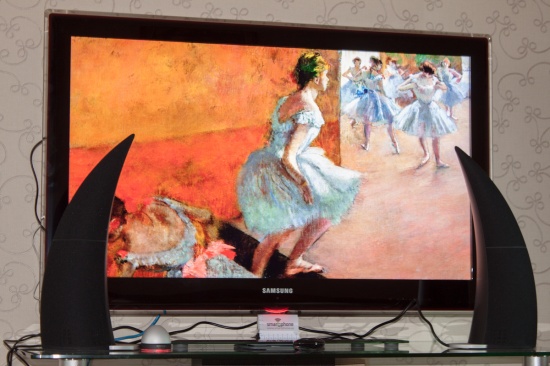 Spinnaker поддерживают A2DP и AVRCP Bluetooth профили. То есть, на акустическую систему можно транслировать музыку с любого портативного устройства в радиусе 10 метров. Воспроизведение музыки посредством Bluetooth не вызвало никаких нареканий, передача звука происходила без пауз. Единственным недостатком можно назвать лишь то, что пульт управления акустикой подключается к компьютеру или другому устройству коротким USB кабелем, что не очень удобно.