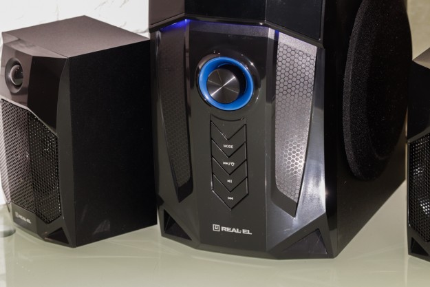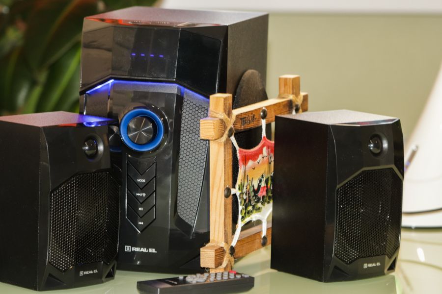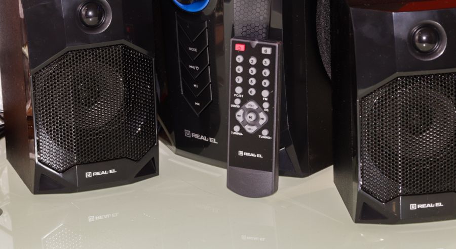 Впечатления от материалов и качества сборки Первое, что нам понравилось в корпусе – за исключением передней его части, в остальном он сделан из дерева. Согласитесь – далеко не все производители в недорогой акустике пойдут на это. Спереди у REAL-EL M-350 пластик, а на сателлитах еще и металлические сетки. Описанная компоновка получилась интересной – выглядит стильно, строго и даже в неком роде статусно – с вашим домашним либо офисным ПК, телевизором или другим источником звука – это фактически беспроигрышное сочетание, особенно, если учесть превосходно сработанную и классно дополняющую имидж M-350 диодную подсветку. Со сборкой все в порядки – ощущения, что на ней пытались сэкономить нет. Подобранные материалы вопросов также не вызвали. Помимо пластика, дерева и металла по периметру нижней части корпуса ножки из мелкопористой резины. Оплетка кабелей – полимер. Эргономика функциональных элементов У REAL-EL M-350 реализовано два формата управления акустикой – посредством пульта ДУ и непосредственно через панель на сабвуфере. По-своему удобны оба, но уже то, что производитель предусмотрел и дистанционный, конечно же, приятно – никакой необходимости быть вблизи системы. Управление простое в обоих случаях – какой-либо особо скрытой функциональности нет, а потому его освоит и пользователь, для которого REAL-EL M-350 - первая система такого рода. Панель управления на REAL-EL M-350 практически полностью вынесена на сабвуфер спереди, хотя и сзади есть также на что взглянуть: разъемы для подключения источников звука, внешней антенны, включатель питания и регулятор баса. Говоря же о передней панели, прежде всего, стоит отметить OLED-дисплей, сочно вписывающийся в общий дизайн. Однако, кроме как элемент декора, он еще и весьма неплохо отображает текущее действие с системой. Чуть ниже дисплея находится регулятор громкости. Далее идет вертикальная полоска кнопок. Самая верхняя – MODE либо же выбор режима. Перечень, кстати говоря, весьма неплох - можно выбирать между PC/Bluetooth/FM/USB/SD. Да, в последних двух случаях речь о воспроизведении с соответствующих внешних носителей. Несложно заметить – слот и разъем под них сверху. Вторая кнопка в арсенале – переход на следующий трек, третья отвечает за режим проигрывания (пауза/воспроизведение), а последняя – переход на следующий трек. Качество звука Качество звука – это именно то, за что следует любить данную систему, прежде всего. Не можем не признать, даже при всех рекомендациях, по причине которых мы взяли на тестирование эту систему, мы не ожидали столь впечатляющей громкости, которая здесь даже с запасом. А вот басовитости могут позавидовать и некоторые системы 5.1. Звук на максимуме громкости чистый. Система всеядна к источникам, и не выбирает, с какого носителя или при каком формате (проводном или Bluetooth) подключения играть лучше. Вместо итогов REAL-EL M-350 стоит рекомендовать пользователям, которые при ограниченном бюджете хотели бы получить качественную мультифункциональную систему формата 2.1 с отличным звуком, но без необходимости при этом переплачивать за известность бренда. Ориентировочная стоимость: 1149 гривен (продукт доступен эксклюзивно в ROZETKA) Источник: SmartPhone.ua