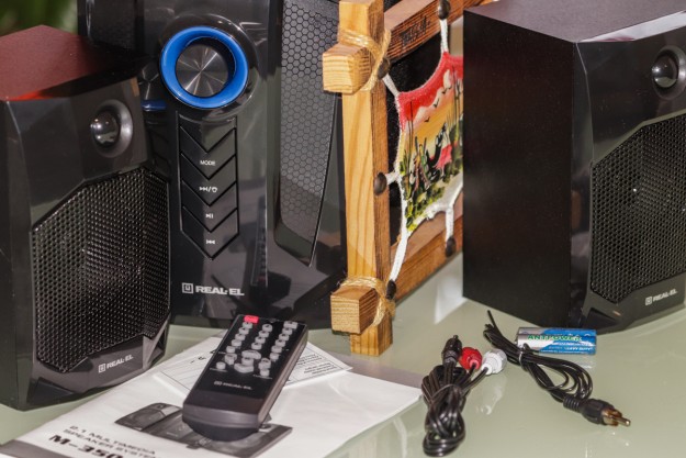 Обзор акустики REAL-EL M-350 – мультифункциональность и хороший звукМы не часто жалуем своим вниманием акустические системы 2.1. Причин того несколько, но главная – их возможности, которыми сегодня уже мало кого удивишь. Тем не менее, время от времени появляются новинки, которые умудряются “захватить” уже с первых минут знакомства с ними. Обо одной из таковых мы и поговорим в этом обзоре. Комплект поставки Знакомство начнем традиционно – с осмотра содержимого коробки. Помимо, разумеется, самого устройства, внутри пользователя ждет следующее: