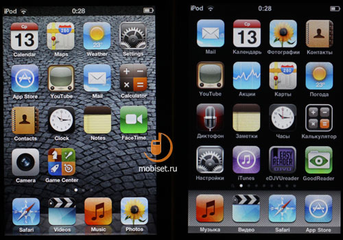 которого ежегодно получают путь в жизнь легендарные плееры iPod. ![]() Но рано или поздно игры с дизайном заканчиваются, выбирается какая-то золотая середина, когда девайс одинаково комфортен для всех и начинается производство лишь слегка моделированных версий. В данном случае, на примере Touch, можно увидеть и привлекательные материалы, и хорошо продуманную эргономику. ![]() iPod Touch 4G выделяется стильным корпусом из металла, как и все другие поколения iTouch. Не буду поднимать вопрос практичности такого решения. Владельцы знают, что блестящая сверкающая панель покрывается царапинами за считанные минуты после извлечения iPod из упаковки. Apple прощается много. Очередное поколение iPod Touch не стало исключением, «спинка» плеера представляет собой гладко полированную поверхность, в которую можно смотреть как в зеркало. Выглядит красиво, но крайне непрактично. ![]() Зато благодаря такому подходу, процветает целая индустрия аксессуаров, которые призваны обеспечить первозданную красоту устройства: чехлов и разнообразных наклеек масса. Но за ними, собственно, и скрывается весь стиль iPod. Поэтому у владельца подобного устройства два пути: купить что-то для защиты от царапин или пользоваться плеером и получать от него удовольствие, не думая о том, как приходит в негодность первозданный внешний вид. ![]() iPod Touch отличался достаточно компактными размерами по мерками многофункциональных плееров, а новое поколение стало еще тоньше. Казалось бы, куда уменьшать и без того тонкий корпус, но такую возможность в Apple нашли. Кто-то может покритиковать iTouch за то, что он стал уж совсем небольшим, я же против таких размеров ничего против не имею. Плеер все так же классно ложится в руку, металл и стекло – это безупречное сочетание. А новый дизайн мобильного устройства лишь подчеркивает его небольшие размеры. На фоне плееров предыдущих версий iPod Touch 4G ощущается уже совсем небольшим и компактным. ![]() ![]() Язык цифр таков: 111 х 58,9 х 7,2 мм, весит плеер 101 гр. Для сравнения, iTouch 3G имел следующие размеры: 111.1 x 61.9 x 8.5 мм, весил он 118 гр. Прогресс ощутим, размеры уменьшились, что не сказалось на удобстве пользования, отлично! ![]() Почти вся передняя панель отдана под 3.5-дюймовый дисплей, который закрыт стеклом. Над экраном, точно по центру, расположена камера. ![]() ![]() Внизу, под дисплеем, кнопка «Home» - единственный элемент управления. ![]() Не левом боку плеера находятся две кнопки из черного пластика – это клавиши регулировки громкости. Они стали чуть более выпуклыми, нажимать их стало удобнее. Кнопки туговаты, надавливать нужно с небольшим усилием. ![]() ![]() ![]() На верхнем торце присутствует кнопка блокировки экрана. Ранее она была в левом углу, теперь перемещена в правый. ![]() ![]() Внизу располагается разъем 3.5 мм для наушников, стандартный интерфейсный разъем Apple для подключения кабеля и разнообразных аксессуаров и динамик, спрятанный под металлической сеткой. ![]() ![]() Задняя панель полностью металлическая, выполнена из единой железной пластины со скошенными сторонами. Если ранние поколения обладали более покатыми боками, то теперь 4-е поколение стало больше походить на самое первое, угловатое. Пропала пластиковая накладка, под которой находились беспроводные модули. Тотальное царство металла. ![]() ![]() ![]() На крышке имеется видоискатель камеры, рядом с ним микрофон. Рисунок с яблоком, конечно же, нику