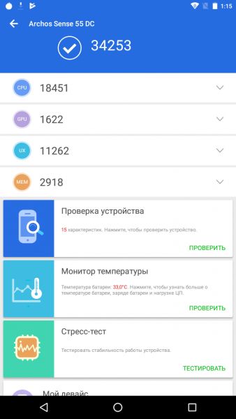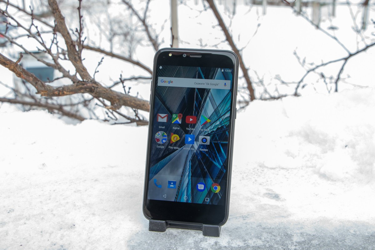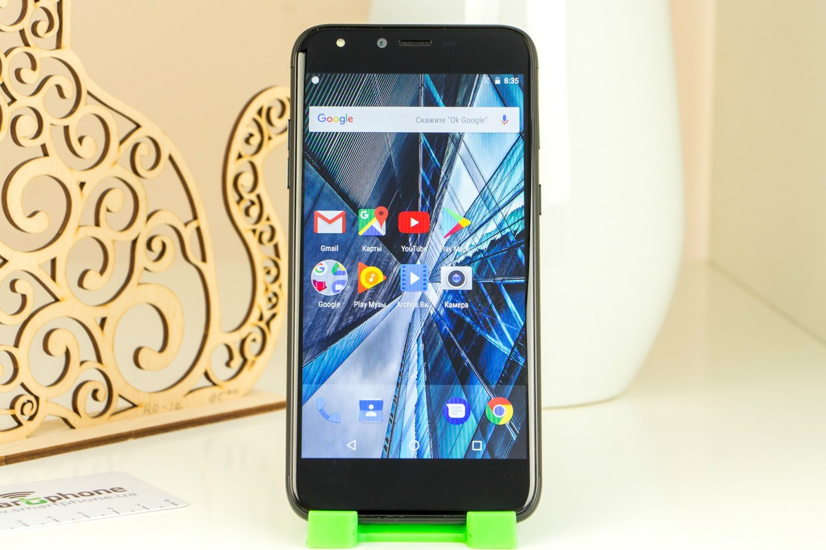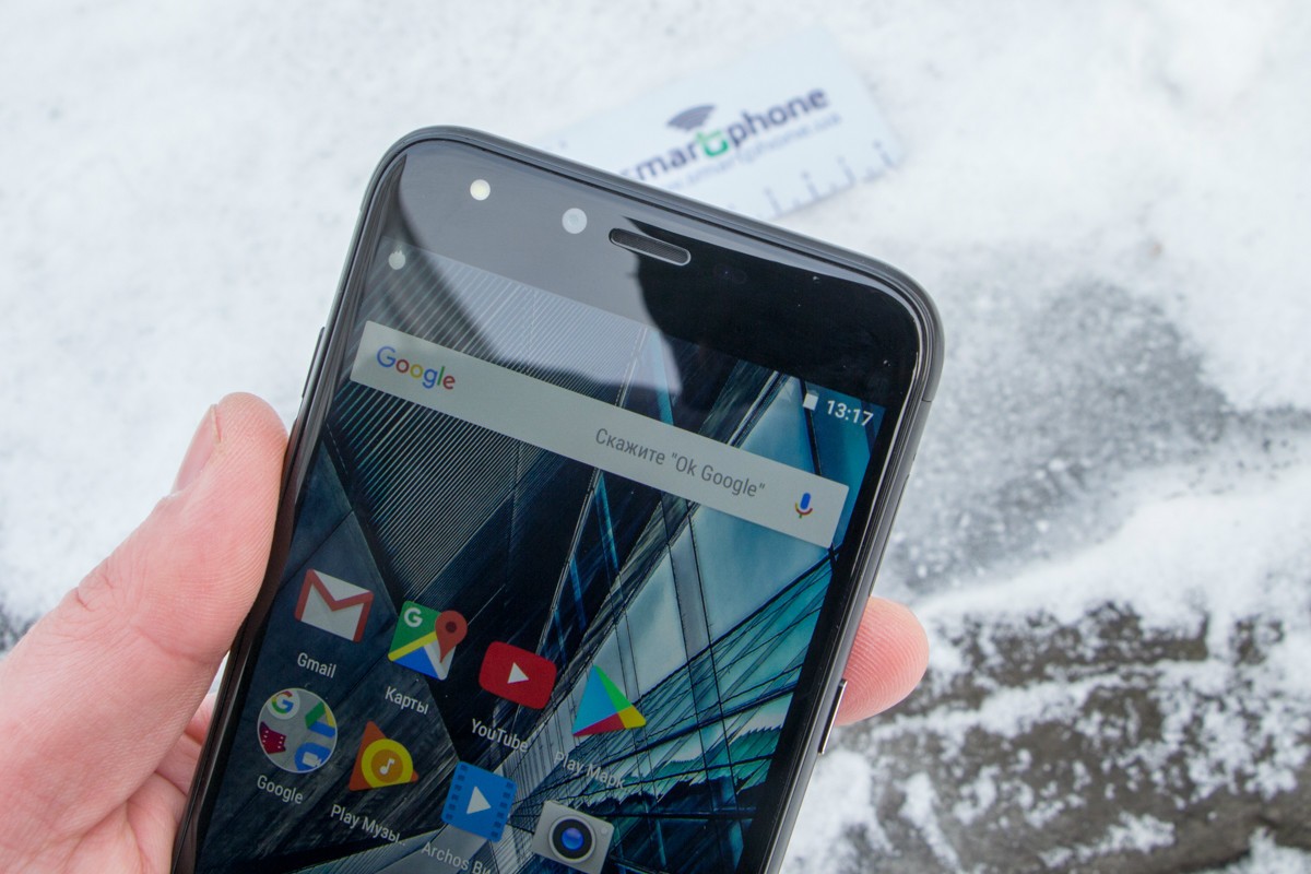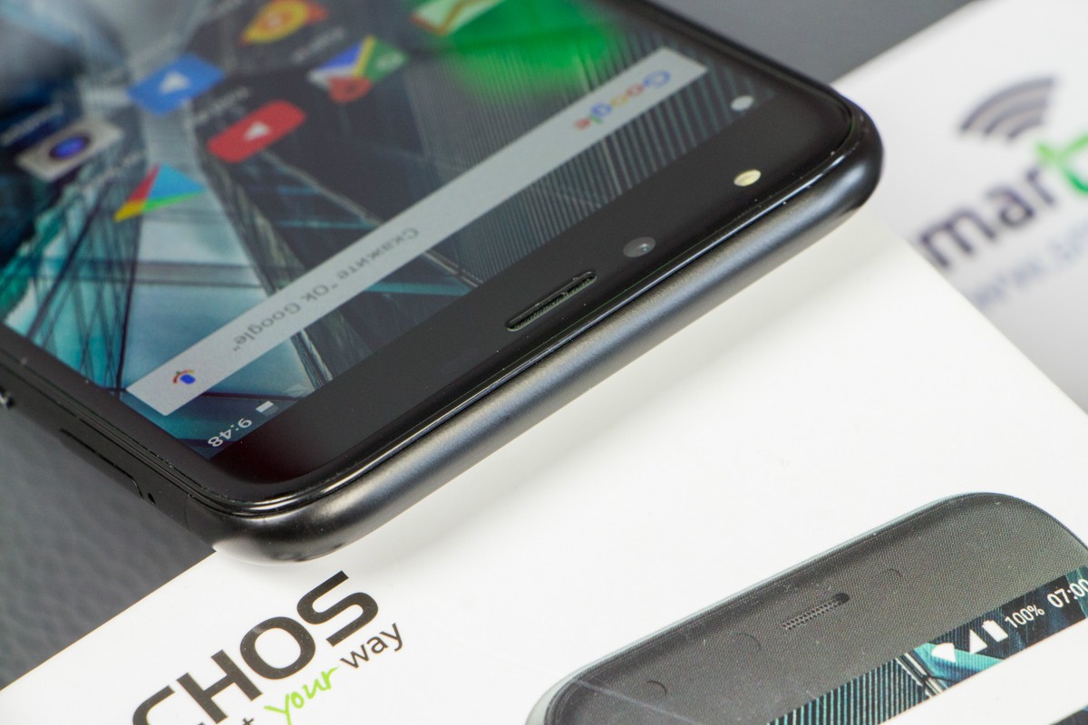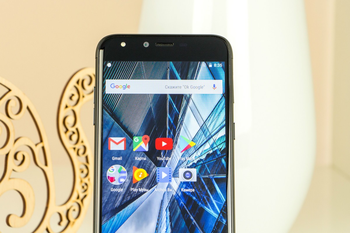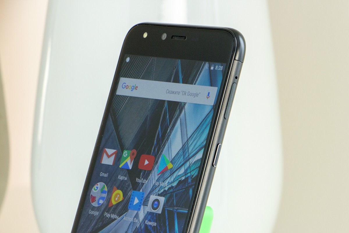 Обзор ARCHOS Sense 55DC – французский середнячок с хорошими характеристиками за 4799 гривенARCHOS Sense 55DC – это среднебюджетный смартфон с отличным набором характеристик, которые многим придутся по вкусу. На рынке ARCHOS запомнились хорошим соотношением цены и качества. Именно последним они так выгодно отличаются от своих конкурентов в этом сегменте. Что это за устройство, какие у него характеристики и чем оно примечательно читайте в нашей статье. Комплектация Первое впечатление о любом предмете формируется на нескольких вещах: на слухах, внешнем виде и описании. В данном случае все было реализовано максимально правильно, поскольку уже сама упаковка к себе располагает. О том, что коробка из картона и как она открывается писать я не стану, однако к себе внимание она приковывает сразу. Как минимум тем, что большую часть площади покрывает оранжевый цвет, за исключением, пожалуй, крышки, где на белом фоне красиво нанесен рендер смартфона, а вся информация нанесена сзади, прямо на поверхности, а не на скучной наклейке. Внутри можно найти сам телефон, зарядку, кабель USB type-C, переходник с USB Type-C на 3,5 мм, а также наушники. Дизайн Устройство очень сильно похоже на произведения конкурентов. Таковы уж тренды 2017-18 годов. Гладенький, металлический, со слегка закругленным стеклом и двойным модулем основной камеры этот смартфон выглядит очень гармонично. В руке лежит удобно, несмотря на то, что в экране не реализовано соотношение 18:9. Правда в маленькой женской ручке будет слегка габаритным, учитывая размер 157,8х77,2х7,8 мм. По эргономике нареканий никаких нет, хоть пользование устройством и было поначалу непривычным. Дело в том, что кнопки управления звуком здесь находятся на левой боковой грани, а блокировка экрана с гибридным лотком под сим карты на правой (nano-SIMx2/nano-SIM+microSD). Обычно, все клавиши находятся на одной стороне. К слову, они тут, как и корпус, выполнены из металла и имеют небольшой, но ощутимый ход. Случайно нажать не получиться, но прилагать много усилий так же не нужно. В целом, пользоваться аппаратом не стало неудобнее, а скорее наоборот. Качество сборки на 10 из 10. Ничего не скрипит, не люфтит. Все подогнано идеально, и даже переход с экрана в корпус реализован настолько плавно, что пальцами зацепиться не за что. На задней панели размещены сканер отпечатка пальцев, вспышка и спаренный модуль камеры. На передней – дисплей с наэкранными кнопками, датчиком приближения, вспышкой и фронталкой. Верхняя грань пуста, нижняя занята портом USB Type-C, микрофоном и динамиком. Дисплей Экран 5,5-дюймовый, IPS, с разрешением 1280х720 пикселей, стекло 2.5D. Соотношение сторон 16:9, запас яркости достаточный, чтобы не ослеплять в условиях низкого освещения и не выгорать при ярком солнце. Подобрать правильный уровень поможет адаптивная регулировка. Помимо нее есть множество уже привычных настроек: размер интерфейса, шрифты, набор эффектов MiraVision. Дисплей получился неплохим. С ним можно легко читать книги, листать новости, смотреть любимые фильмы и сериалы, либо просто сидеть в мессенджерах. Относительно низкое разрешение никак не сказывается на общем впечатлении от картинки и качестве отображения. Скорее наоборот, оно лишь вызывает дополнительное удивление и мысли о том, что производитель все-таки установил сюда Full HD матрицу, с чем, к сожалению, не согласны тесты и бенчмарки. Аппаратна