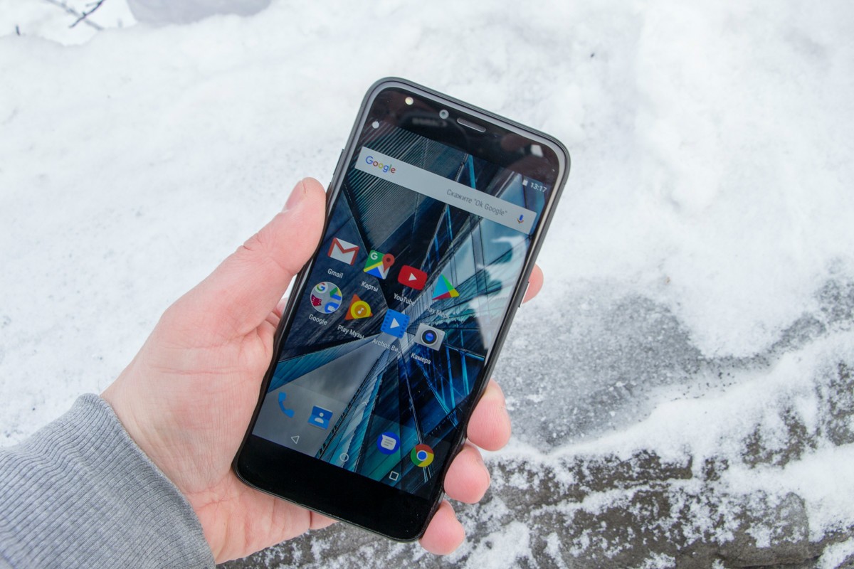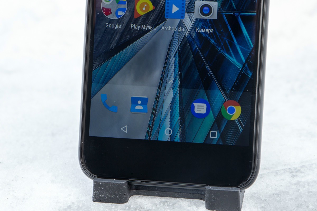 Фронтальная камера на 5 Мп. Максимальное разрешение фото 2560х1920, видео 640х480. Подобных параметров с головой хватит для Instagram, либо создания аватарок для своих социальных сетей. Для общения по видеосвязи тоже подойдет, хотя HD в этом плане был бы поинтереснее. К сожалению, не обошлось и без странностей. Фокус заблокирован на апертуре примерно равной f2.4. В следствии с чем возникает странное цветовое искажение при определенном отдалении камеры от объекта съемки, после чего он начинает ощутимо «желтить». Особенно это становится заметным на светлом «втором плане», например, на фоне неба. Связь Поддерживаемые стандарты связи: 2G, 3G, LTE. Установлены модули Bluetooth 4.1 (с пониженным потреблением энергии), Wi-Fi 802.11 b/g/n и GPS. Уровень сигнала стабильно хорош, без каких-либо нареканий. На момент обзора устройство ловило сеть Vodafone на максимальных показателях, в то время, когда остальные в этом же месте имели уровень не выше 80%. Качество разговорного динамика соответствует ожиданиям. Мультимедийный хорош для разговоров и воспроизведения рингтонов, но не слишком для прослушивания музыки. Запас громкости очень высокий, слышен как на шумной улице, так и в соседнем помещении. Батарея Аккумулятор на 3000 мАч сейчас мало кого удивит, но на ARCHOS Sense 55DC установлен именно такой. Привычным к более вместительным девайсам его может не хватать. На практике этого объема достаточно для суток относительно активного использования: 4-5 часов прослушивания музыки, 2-3 часа серфинга в сети интернет, просмотр нескольких эпизодов любимого сериала на средних настройках яркости (звук выводился через наушники) и парочки телефонных разговоров протяженностью до 5 минут каждый, при активном использовании мессенджеров по типу Viber. При меньшей нагрузке процесс разрядки можно растянуть до 2 дней, особенно если постоянно очищать память от большого количества одновременно открытых приложений. Система и защита Версия Android 7.0. Внешне это чистая система, без каких-либо надстроек. Лаунчер очень напоминает таковой в Pixel-фонах от Google, за исключением разве что строки поиска (она не сворачивается). Никаких особенных «надстроек» и скрытого функционала жестового управления и подобных элементов нет. Русификация полная. Никаких ошибок, либо текста на английском обнаружено не было. Выводы ARCHOS Sense 55DC достойный аппарат, который не стоит сбрасывать со счетов при выборе устройства, стоимостью до 200 долларов. Пускай в некоторых моментах он проигрывает некоторым представителям Поднебесной по характеристикам, либо функционалу. Но он определенно стоит своих денег. Если нужен размер меньше, то в продаже будет доступен ARCHOS Sense 50dc за 4599 с экраном 5 дюймов. Больше всего смартфон подойдет тем, кому нужно прочное и надежное устройство с красивым внешним видом и доведенной до совершенства системой, без каких-либо косяков.