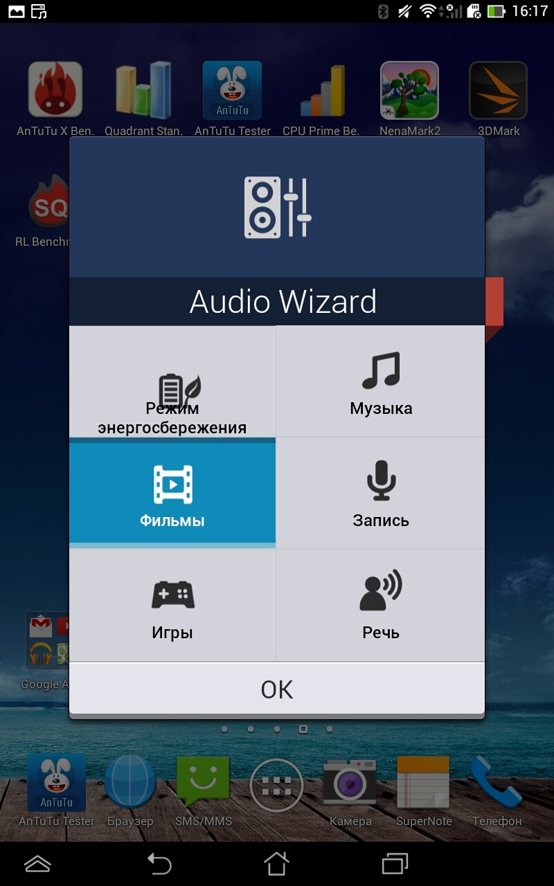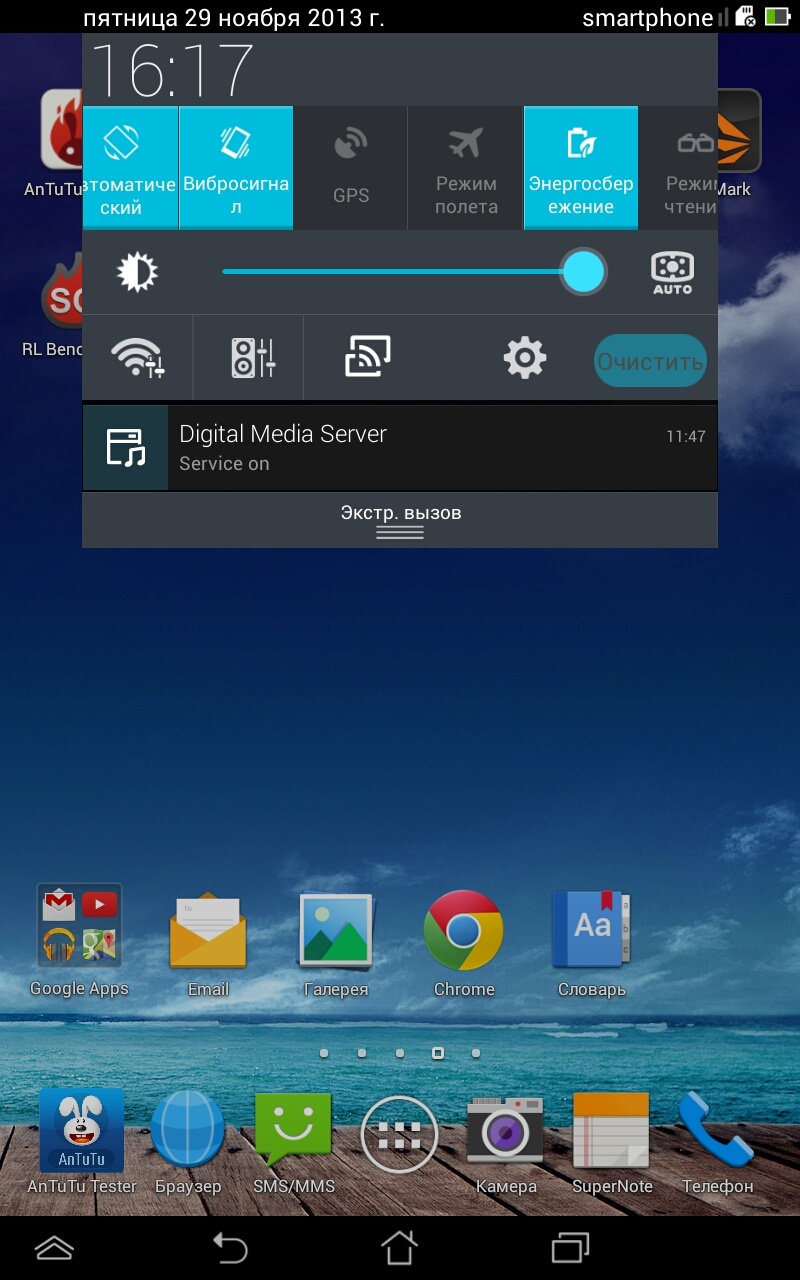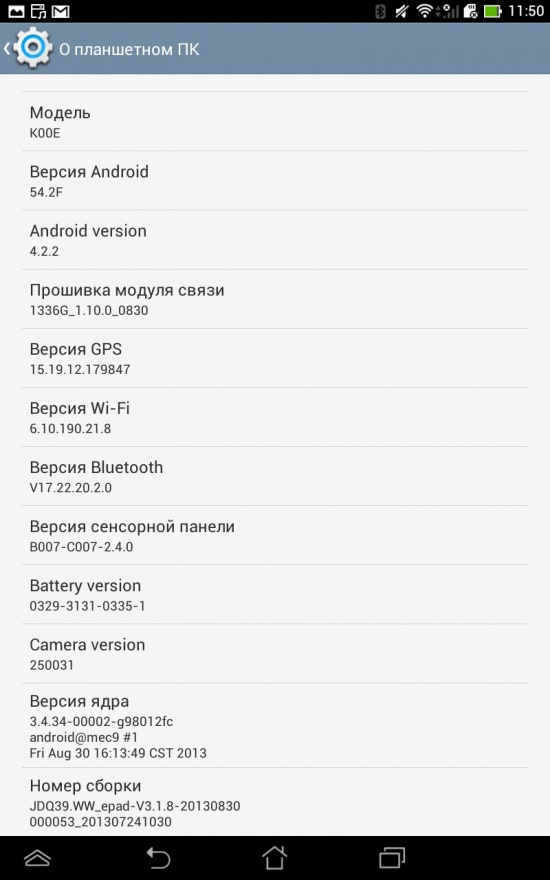 Работает планшет под управлением ОС Android 4.2.2 с некоторыми дополнениями со стороны ASUS.