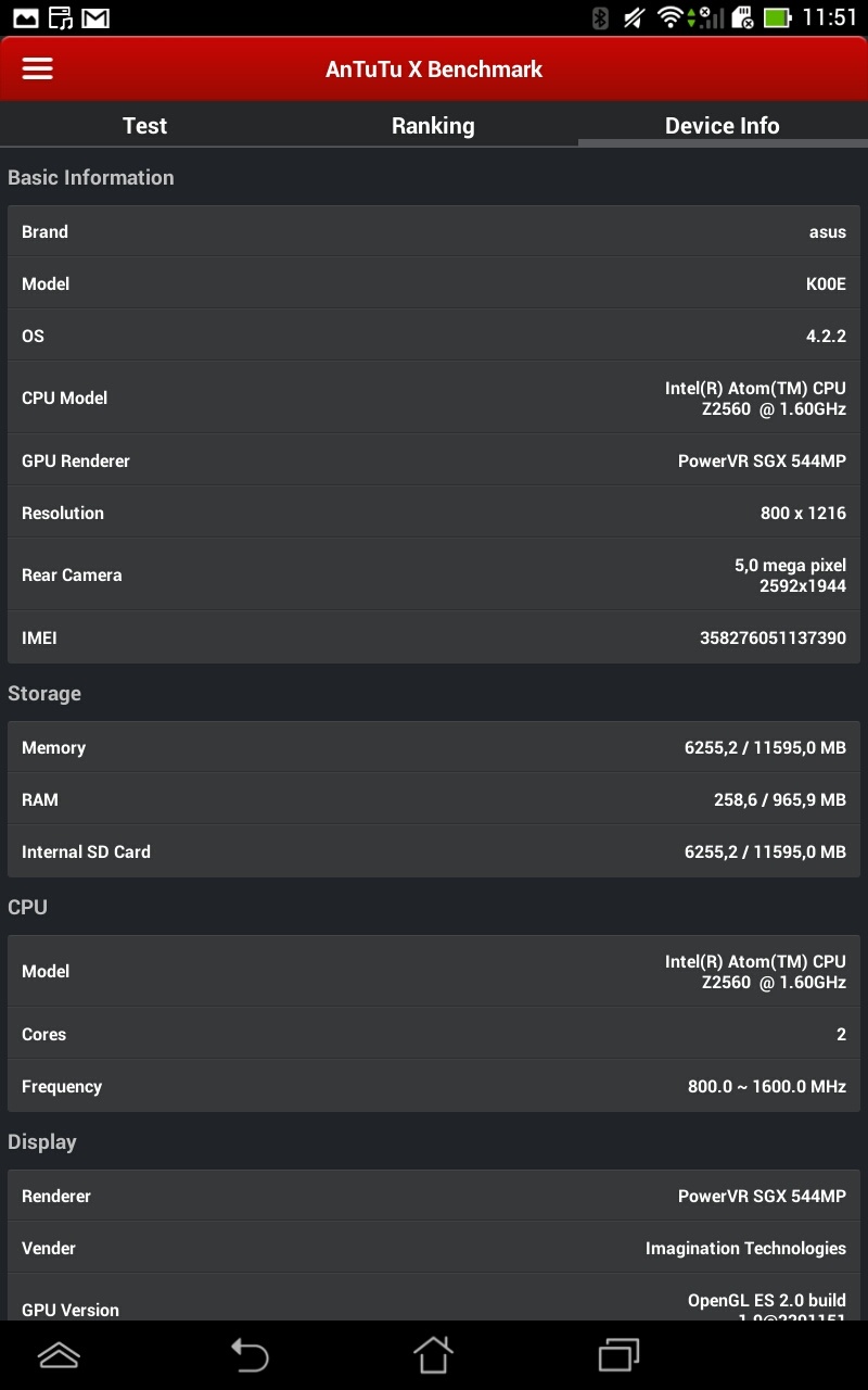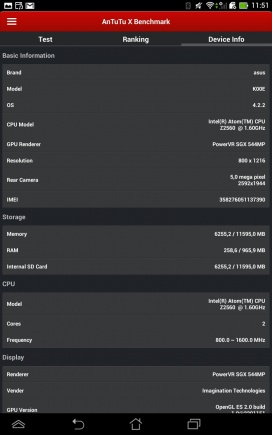 По части «железа» на борту ASUS Fonepad 7 установлен 2-ядерный Intel Atom Z2560 с тактовой частотой 1.6 ГГц, графика PowerVr SGX 544MP и 1 ГБ оперативной памяти.