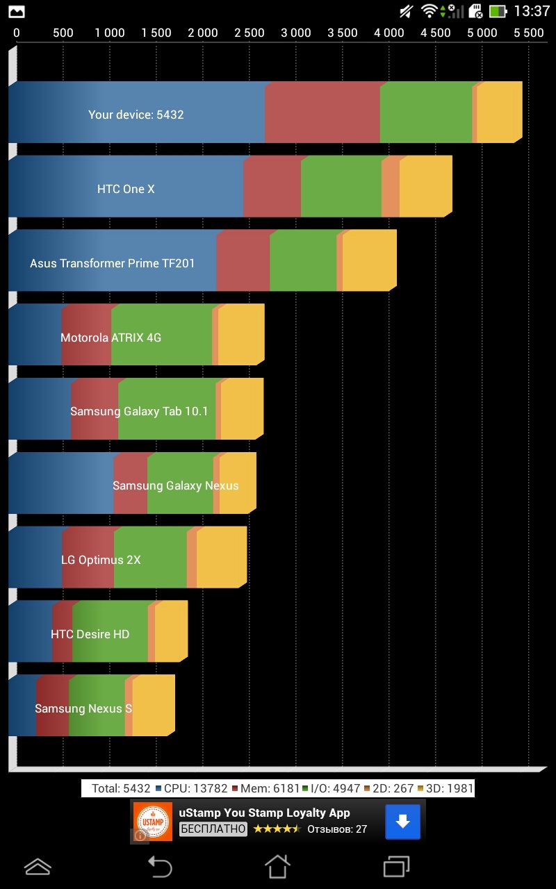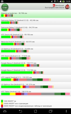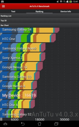 Хочу отметить, что с таким оснащением в бенчмарках планшет демонстрирует производительность даже несколько выше, нежели устройства, функционирующих на базе 4-ядерных процессоров ARM.