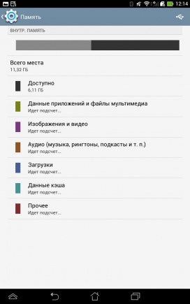 Планшет доступен в трех модификациях со встроенной памятью – 8 ГБ, 16 ГБ и 32 ГБ. В тестируемой модели установлено 16-ть, из которых пользователю доступно порядка 11 ГБ.
