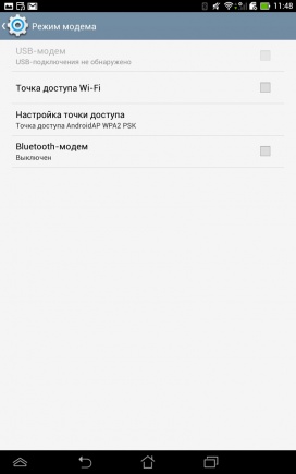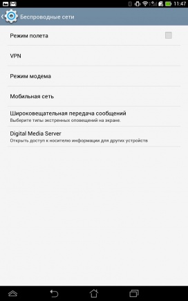 Предусмотрены в Fonepad 7 также цифровой медиасервер Digital Media Server, поддержка USB-OTG, технологии Miracast и VPN. Помимо работы устройства в качестве точки доступа Wi-Fi, режим модема можно использовать для подключения к Интернету через Bluetooth, а также порт USB.