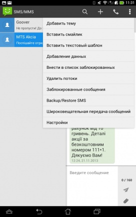 Работа ASUS Fonepad 7 в режиме «смартфона» мне понравилась. Для отправки SMS-сообщений и осуществления традиционных звонков здесь предусмотрен специальный интерфейс.