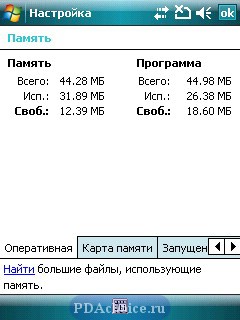 Как видите, аппарат справляется с воспроизведением видео-роликов на пределе своих возможностей.Показатели памяти достаточно стандартны для устройств такого класса и имеют следующие значения – 64 Мб ROM и 128 Мб RAM. Как уже упоминалось выше, пополнить объем флэш-памяти (RAM) можно при помощи карт памяти стандарта MicroSD.