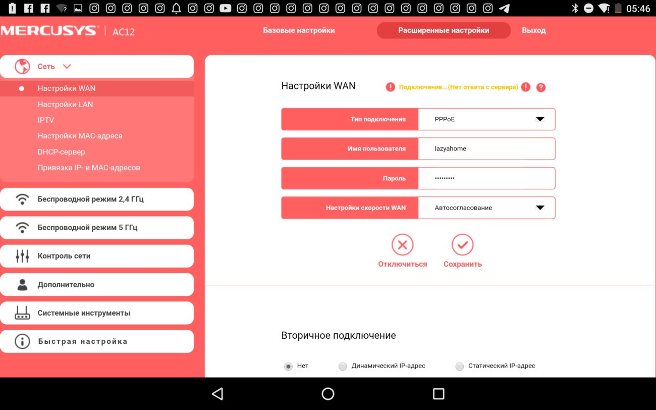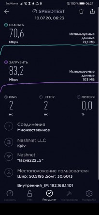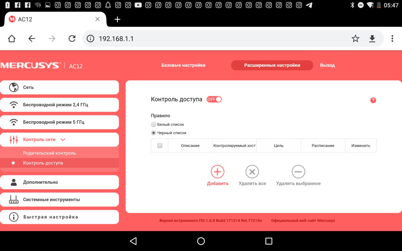 Обзор беспроводного маршрутизатора Mercusys AC12: 4 антенны, два диапазона, скорость 300+867 Мбит/сMercusys AC12 – бюджетный беспроводной маршрутизатор, который поддерживает два диапазона частот для работы в сети Wi-Fi, но по цене сравним 2.4 ГГц роутерами от более узнаваемых брендов. Будем переплачивать или выберем Mercusys? О всех возможностях устройства и своем выборе расскажу в обзоре. Дизайн и корпус Mercusys AC12 упаковали в корпус с черным верхом, серыми антеннами и такой же нижней крышкой. Глянца минимум, из него вверху образуется буква «X» добавляя оригинальности внешнему виду. Глянец также использован в названии бренда, которое расположено ближе к краю с обозначением индикаторов работы роутера. Для пользователя вынесли LED подсветку режимов работы, активности 4-х LAN портов и наличие/отсутствие доступа в Интернет. Возле портов с тыльной стороны только вход питания 9В/0,85А и кнопка сброса настроек. На сборку нареканий нет, материалы подобраны со вкусом. Это уже второе устройство от Mercusys на тесте редакции портала Smartphone.ua, после Wi-Fi роутера Mercusys MW301R, но оба выполнены в разных стилевых решениях, так что о какой-то узнаваемости или наследственности говорить не приходится. Важный элемент конструкции обозреваемого роутера – 4 внешних антенны мощностью 5dBi. Их нельзя снять, но можно повернуть на 180 градусов. Устройство на 1 мм возвышается над поверхностью стола, чтобы обеспечить вентиляцию аппаратной составляющей. Ножки без противоскользящего покрытия, так что роутер будет устойчив только на ровной поверхности. При желании его можно повесить, крепления предусмотрены. Габариты 222х140х32 мм. Работа в беспроводной сети Mercusys AC12 поддерживает скорость до 867 Мбит/с в диапазоне 5 ГГц и до 300 Мбит/с в диапазоне 2,4 ГГц. Заявление смелое и актуальное только для передачи данных между двумя устройствами внутри беспроводной сети, которую создаст пользователь в настройках модели AC12. Причина – WAN (проводной порт приема от провайдера) ограничен 100 Мбит/с. Для локального подключения клиент может использовать один из 4- портов LAN. Кабелю от провайдера выделили отдельный порт, он соответствующе подписан и выделен оранжевым цветом. Проверили скорость Wi-Fi через Speedtest с интернет-соединением в 1 Гбит/с, кабель подключен к 100 Мбит/с порту модели AC12. Цифра не удивила и не расстроила. Пусть 70 Мбит/с на скачивание и 83 Мбит/с на закачку и не много, зато данные подтвердили, что устройство работает на своих максимальных скоростях. Тест проведен в сети 5 ГГц. В сети 2,4 ГГц - цифры 56/60 Мбит/с. Настройка Mercusys AC12 прост в настройке. Первым делом подключите кабель к WAN порту. После этого можете сразу подключаться к Wi-Fi сети, которая создана по умолчанию. Ее название смотрите на этикетке на внизу. Веб-интерфейс по умолчанию - 192.168.1.1. Там находится мастер быстрой настройки. Настроек у роутера не много, так что интерфейс не перегружен лишней информацией. Если выбираете роутер для семьи, Mercusys AC12 вам подходит. Еще и потому, что родительский контроль и ограничение доступа по конкретным устройствам присутствует. Приложения для смартфона в Mercusys не реализовали. Думаю, оно не нужно, так как веб интерфейс хорошо адаптирован под смартфоны. Вывод Просто, понятно, презентабельно и доступно – это про Mercusys AC12. Роутер не для игроманов и не для поклонников стримов в 4K разрешении. Он больше для спокойной жизни. Пусть и не быстро, за
