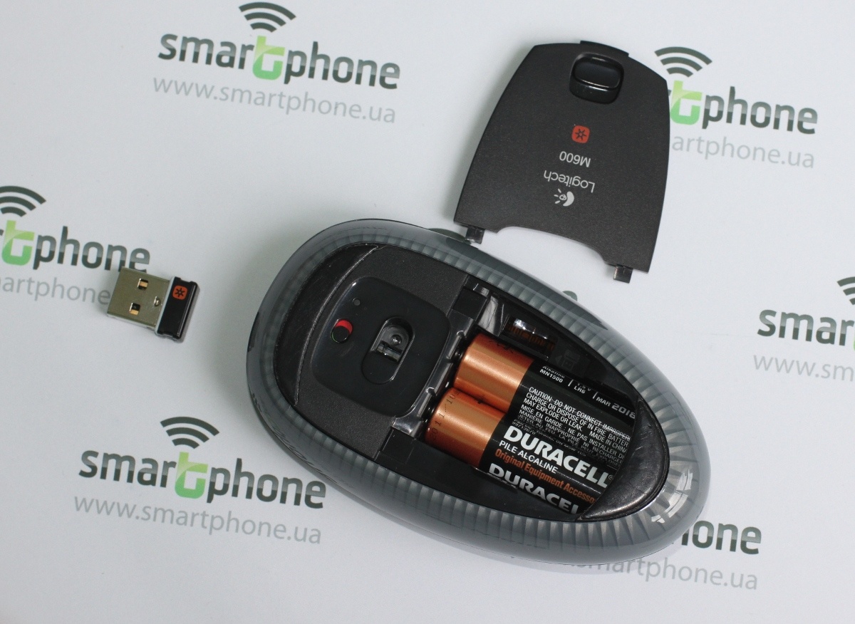 В районе переднего и заднего торцов нижней панели расположены специальные, тактильно прорезиненные насадки, которые на практике являются своего рода посредниками, улучшающими скользящие особенности мышки. Здесь же обустроена кнопка переключения питания, аккумуляторный отсек и пр. Работает m600, как уже отмечалось от аккумуляторов или батареек типа АА. Любопытно, что работа возможна как при помощи пары батареек, и при помощи всего одного топливного элемента. Шутка лишь в том, что, если пользователь задействует две батарейки, согласно официальным данным, он может рассчитывать на полгода автономности, ну а если речь только об одном аккумуляторе (читайте батарейке), автономность сократиться до трех месяцев. Тем не менее, если на практике все так, как заявлено, даже три месяца выглядят неплохо.