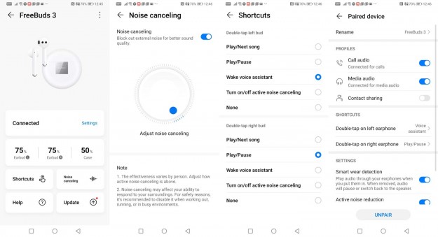 Обзор беспроводных наушников-гарнитуры Huawei FreeBuds 3: обязательное дополнение к смартфонуHuawei FreeBuds 3 – очень легкие наушники, которые «висят» на краю уха, отлично играют и умеют подавлять шум. Внешне схожи с AirPods, но по своим функциям их можно прировнять к AirPods Pro. Как они показали себя в реальной эксплуатации расскажу в обзоре. Дизайн и корпус FreeBuds 3 не получили чего-то оригинального в своей конструкции. И это правильно, ведь в универсальном устройстве, которое будут использовать в качестве гарнитуры и для прослушивания мультимедийного контента в транспорте, в офисе и на отдыхе, эксклюзивности не требуется. Этому сегменту пользователей нужны отличное звучание и удобная конструкция на каждый день. Форма наушника из полированного пластика белого цвета сочетает в себе продолговатую цилиндрическую ножку и сжатую сферу с вырезом под решетку. Если ранее не держали в руках AirPods, то без дополнительного изучения надписей понять, что перед тобой продукт от Huawei будет сложно. Но компания поступила умно – предложила покупателю не только белый корпус, а еще черный и красный. Себе бы я 100% выбрал черные. Бокс для хранения и зарядки беспроводных наушников выполнен из аналогичного пластика. Его форма похожа на диск, но с возможностью раскрытия. Внутри место под два наушника и светодиодный индикатор. Он показывает процент заряда батареи, которая в свою очередь заряжается от USB Type-C порта. Или через беспроводной интерфейс Qi, что очень удобно. На боковой стороне зарядного устройства предусмотрели кнопку, которая активирует режим сопряжения. По сборке и подбору материалов замечаний нет. Учтите, что белый цвет очень практичен – на нем не вижно ни царапин, ни отпечатков. Звучание FreeBud 3 не предназначены, чтобы плотно сидеть в ухе. И даже этот нюанс не лишает владельца классного звука. Звук кажется объемным и насыщенным басами. Даже на высокой громкости звучание не давит до боли в голове. Максимальная громкость достойная, но кому-то, предполагаю, будет не хватать низких частот. Особенно в тех случаях, когда вокруг очень шумно. В режиме с выключенным шумоподавление звучание не разочарует. Зато не пропустите свою сианцию метро, которую объявил машинист, или услышите то, что говорит Вам коллега, если используете устройство в офисе. Единственно замечание – работа в режиме гарнитуры. Иногда появлялось ощущение, что мой голос недостаточно выделяется на фоне общего шума, например, когда иду в переходе или нахожусь в помещении с громкой фоновой музыкой. Приходилось интуитивно повышать свой голос. Хотя собеседники обычно не жаловались на то, что меня плохо слышно. Режим шумоподавления Он полезен и к нему привыкаешь. В нашем случае - это активное шумоподавление без пассивного шумоподавления. Другими словами, без звукоизоляции, окружающий звук проходит в наушники, но FreeBud 3 умеет его заглушать. На практике, подавление шума обозреваемым устройством практически убирает шум движения состава метро и позволяет слышать любимую музыку в ушах более четко и реалистично. Чтобы активировать режим шумоподавления нужно использовать приложение для Android или дважды нажать по сенсорной кнопке на левом наушнике. Через программу удобнее, так как можно выставить уровни подавления шума. В этой же программе пользователю доступна функция переназначения кнопок. Автономность В каждом н