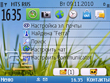 Перейдём к предустановленным программам. Первое, что сделал я с телефоном, когда он попал ко мне в руки, - попытался написать пост в свой микроблог. Как оказалось, за пунктом меню «Twitter» скрывается не что иное, как просто ссылка на сайт mobile.twitter.com. А вот приложение Facebook оказалось именно приложением. После запуска оно потребовало обновления, но переходить от слов к делу и обновляться не захотело — отбрехивалось ошибкой. Словом, работать Facebook-клиент всячески отказывался. На помощь пришёл магазин Ovi: в нём нашлась программа Tweets60 — неплохой аскетичный твиттер-клиент, обеспечивающий полноценный доступ в социальную сеть. Кстати, магазин приложений OVI заслуживает отдельного доброго слова. Сейчас принято его ругать, однако функции свои он выполняет: имеет продуманную структуру каталога, удобные описания, и, что самое приятное – мусора в нем пока что мало, особенно в сравнении с теми же iTunes App Store и Android Market. Более позитивное впечатление о себе оставила работа с почтой с помощью встроенного клиента Nokia Mail: в E5-00 он заметно переработан и приблизился к мобильному идеалу – не зря аппарат принадлежит к семейству «E». На активном рабочем столе отображаются входящие сообщения, и внешность этого виджета тонко настраивается. Взрослая многозадачность в Symbian заменяет хвалёный эппловский push-сервис — письма с аккаунта на me.com приходили на E5-00 с задержкой не более минуты. Кроме того, бизнес-ориентированность смартфона подкрепляется предустановленными приложением Communicator от Microsoft и полноценной версией QuickOffice с возможностью редактирования документов.