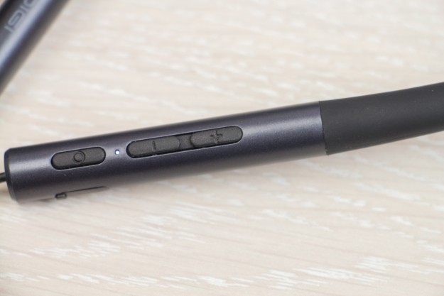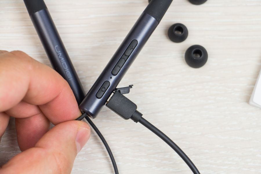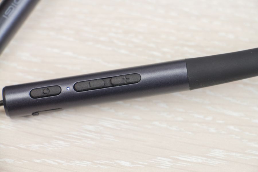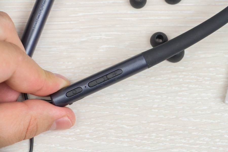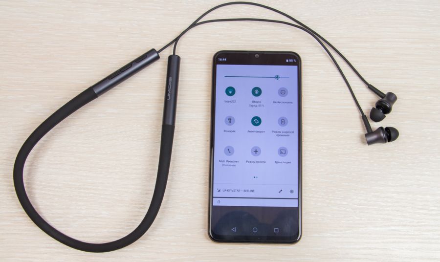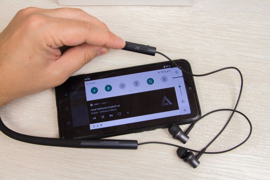 Из неоспоримых плюсов хорошее крепление – дужка из черного эластичного прорезиненного материала надежно огибает шею и не снует по ней. Достигается это и за счета веса в 33 г. Этого немало, чтобы все-таки ощущать, что наушники на вас одеты и «сидят» надежно, но и немного, чтобы шея уставала даже при длительном их использовании. Сами наушники выглядят габаритно, тем не менее, их «посадка» в ушах надежная и комфортная. Вакуумные амбушюры плотно прилегают к поверхности ушной раковины, при этом не сильно давят на нее. Наушники изготовлены из металла и пластика, и что немало важно магнититься друг к другу, благодаря чему, свисая с шеи, не развеваются как уши спаниеля. Из пластика также выполнены вставки на концах эластичной дужки, на которых находятся функциональные элементы. Конструкция и элементы управления О рабочем состоянии гаджета и уровне его заряда сигнализирует светодиод, расположенный между кнопками увеличения/уменьшения громкости и клавишей включения. Белый свет – устройство активировано/заряжено на 100%, красный – деактивировано или же в процессе подзарядки. На ярком солнце светодиод довольно тусклый, впрочем, так как управление наушниками осуществляется большинством все-таки на ощупь, то это не вызывает неудобств. К тому же в наличии голосовая подсказка на английском языке, которая информирует о включении/выключении наушников 3-секундным удержанием кнопки Power. Единичное ее нажатие выполняет функцию Проигрывание/Пауза. При удержании клавиши уменьшения громкости можно перейти к следующему треку, а клавиши увеличения громкости – вернутся на трек назад. Этим же движением последней вы отменяете входящий звонок, а одноразовым нажатием принимаете его. Элементы управления расположены слева на затылочной дужке. Они имеют удобные для нажатия на ощупь размеры и расстояние между собой. Здесь же на боковушке находится прикрытый порт microUSB. Время автономной работы А теперь немного цифр. Согласно инструкции, аккумулятор UMIDIGI Ubeats на 140мАч заряжаются с 0 до 100% за 1,5 часа и они могут воспроизводить звук в течении 12 часов. На практике подзарядка от 5В/1A адаптера заняла 1час 40 минут, а время автономной работы на среднем уровне громкости составило 11 часов 40 минут, так что производитель нас не обманул. Подключение Соединение UMIDIGI Ubeats со смартфоном по Bluetooth заняло считаные минуты. Все, что нужно - активировать модуль на смартфоне и включить сами наушники. Мой телефон очень быстро распознал новый гаджет и без проблем сконектился с ним. Если ваше устройство попросит пароль, то согласно руководству пользователя, нужно ввести «0000». При последующем использовании наушников они будут автоматически подсоединяться к тому девайсу, с которым были соединены последний раз. Для смены гаджета необходимо очистить историю соединений. Для этого нужно на наушниках одновременно на 5 секунд зажать кнопку включения и клавишу уменьшения громкости. При разрыве соединения со смартфоном или другим устройством из-за тех или иных обстоятельств наушники перейдут в режим ожидания и через 5 минут автоматически выключатся. Но на практике связь с источником у наушников хорошая и случайных прерываний не было. Технические характеристики и звук UMIDIGI Ubeats оснащены модулем Bluetooth 5.0, поддерживают профили A2DP / AVRCP / HSP / HFP. Наушники имеют очень хороший запас по громкости и выдают