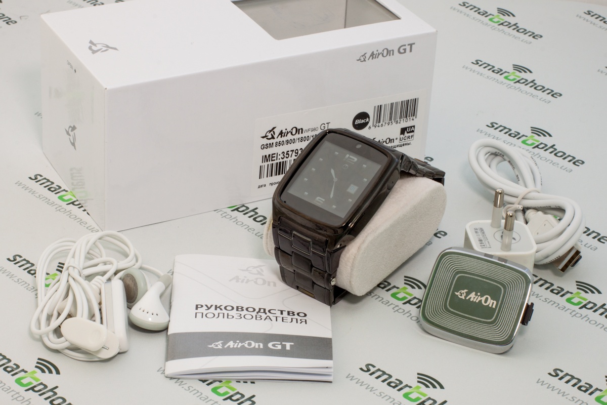 Обзор часофона AirOn GT – звонки с понтамиВам не важна функциональность, но вы на все готовы ради «бомбезной» внешности своей трубки и необычного форм-фактора? Тогда AirOn GT - именно то, что вам нужно. И вот почему! Лень читать текстовый обзор? Смотрите подробный видео-обзор...КомплектацияКомплект поставки AirOn GT – это адаптер зарядного устройства, кабель micro-USB, а также проводная гарнитура, плюс всевозможная документация и дополнительная батарея емкостью 600 мАч. Еще одна точно такая же изначально вставлена производителем в соответствующий слот телефона. Все это упаковано в компактную коробку, изготовленную из белого картона. Кстати, дизайн коробки сдержанный, вставок из других цветов нет, только техническая информация об устройстве и компании-производителе в виде наклейки на одной из стенок. Материалы и качество сборкиИтак, перед нами телефон, обладающий 100% металлическим корпусом, за исключением разве что покрытия дисплея – здесь пластик. Конечно, жаль, что здесь не защищенное стекло – производитель ведь предлагает AirOn GT в том числе и как «часофон с повышенной прочностью». Что касается качества реализации самого корпуса, здесь претензий никаких. Даже осматривая «трубку», как говорится, под микроскопом, вряд ли удастся за что-либо упрекнуть его – все элементы подогнаны между собой грамотно, швы и зазоры в пределах нормы. Механизм фиксации браслета за пару недель эксплуатации не «разболтался», что также в пользу качества сборки, да и материалов в том числе. С крепление крышки также никаких проблем нет. По времени выполнение такой процедуры не более двух секунд. Люфт по итогам не прослеживается. ДизайнТо, как выглядит AirOn GT, наверняка понравится любителям больших наручных часов. На руке аппарат смотрится очень стильно, и я бы даже отметил, по-своему изящно. Глянцевый металл с небольшим количеством матовых вставок и вставок других цветов, мощный браслет с, повторюсь, отличной работой механизма фиксации на руке и немаленький по меркам наручных часов дисплей – поверьте, все это обращает на себя внимание. Рядом с моими наручными Manguunэти «часики» выглядят куда более богаче, и не только потому, что еще и звонить умеют! Словом, для тех, кому важны понты по работе или понты – это его стиль жизни, данная покупка лишней точно не окажется. А еще на поверхности браслета фактически не видны отпечатки пальцев, что тоже хорошо. Да и протереть их дело пары секунд. Функциональные элементыОтносительно кнопок, разъемов, выводов и прочих функциональных элементов на корпусе AirOn GT, отмечу следующее. Над дисплеем пользователь встретит глазок 1,3 Мп фронтальной камеры, а немного ниже него прорезь встроенного микрофона. А вот на той недвижимой части браслета, которая крепится к верхнему торцу устройства, расположен вывод динамика громкой связи. Надо отдать должное – реализация его, как, впрочем, и сам дизайн устройства, превосходные. По сути, во время беглого осмотра корпуса, заметить вывод динамик сложно – он фактически «сливается» с панелью. С точки зрения дизайна это только плюс. На торце слева пользователю доступны две кнопки, а также порт micro-USB, прикрытый плотной пластиковой заглушкой. Какая из кнопок, за что отвечает в AirOn GT, уверен, понять несложно. Для этого достаточно лишь взглянуть на обозначения, реализованные на каждом из этих элементов. Что еще обрат
