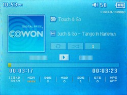 Подключение к ПКИнформацию на Cowon D2 можно загрузить двумя способами, что является редкой особенностью. Данные сохраняются либо как на обычный флеш-накопитель (при выборе режима передачи данных в режиме MSC (UMS)), либо через Windows Media Player 11, когда плеер подключен в режиме MTP. Режим работы проигрывателя выбирается в разделе «Настройки»: settings>System>usb connection. При подключении плеера в качестве флеш-накопителя в системе появляется два съемных диска — встроенная память и кардридер. Скорость записи во встроенную память составляет в среднем около 5 мегабайт в секунду, что вполне приемлемо. Проигрыватель поддерживает флеш-карты SD/SDHC объемом до 8 ГБ (карты большего объема не проверялись ввиду их отсутствия). К слову, в ранних прошивках были проблемы с распознаванием некоторых карт, но на текущий момент этот недочет ликвидирован. Запись на карты памяти через плеер происходит медленнее, чем через специализированный кардридер, но и те 3—3,5 мегабайта в секунду, которые получаются, — тоже очень неплохой результат. Итого суммарный объем может составлять 32 (такова заявленная максимальная емкость карт SDHC на текущий момент) и более гигабайт, чего вполне достаточно для хранения большого количества музыкальных композиций (даже в формате lossless), а также видеофайлов, не говоря уже о тексте и графике. Питание и автономная работаЕмкость аккумулятора производитель не указывает, однако заявленное время автономной работы — 52 часа в аудиорежиме и 8 часов в режиме просмотра видеофайлов — внушает уважение. На полном заряде плеер продержался почти 43 часа при проигрывании МР3-файла с битрейтом 192kbps и чуть больше 8 часов при цикличном воспроизведении рекламного видеоролика, что является очень хорошим показателем. Этим объясняется тот факт, что вопреки текущей моде на тонкость Cowon D2 толстоват: в нем установлен аккумулятор большой емкости, что и позволяет получать такие выдающиеся результаты. При ежедневном использовании устройства в качестве аудиоплеера (порядка 3,5—4 часов) необходимость зарядки возникает не чаще одного раза в две недели. Однако в данном случае речь идет об искусственно созданных условиях, ведь при каждом подключении к компьютеру проигрыватель тоже заряжается. Таким образом, в большинстве случаев можно вообще забыть про то, что аппарат нуждается в зарядке. Зарядка производится как от USB во время подключения к компьютеру (порядка 7 часов), так и от сетевого зарядного устройства (около 3,5 часа), идущего в комплекте. МедиаИзображенияГрафика, сохраненная во внутренней памяти или находящаяся на SD/SDHC-карте, доступна для просмотра с помощью браузера. При запуске раздела Picture (Изобр.) открывается содержимое папки Photo. При желании можно просмотреть изображения, сохраненные в любом месте плеера. Проигрыватель открывает файлы в формате Jpeg, явных ограничений на разрешение нет. Однако чем больше файл, тем дольше он загружается и тем медленнее происходит поворот или увеличение картинки. В режиме слайд-шоу во время отображения одного файла загружается другой (в фоновом режиме), и переход к нему происходит без ощутимых задержек. Любую картинку (фотоснимок, изображение) можно назначить в качестве фона для меню. FM-радиоВ этой области подавляющее большинство портативных устройств находится в практически равных условиях, и их функциональность совпадает почти всегда.