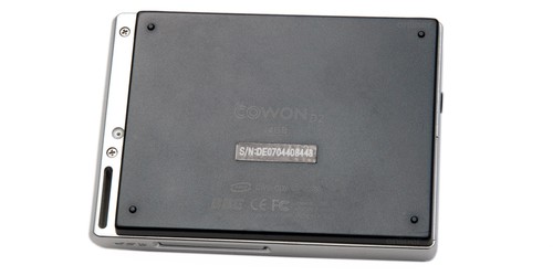 В правой части плеера, в серебристой вставке, есть щель, за которую можно зацепить стилус. Его же можно вставить в щель и получить таким образом подставку. Задняя панель несет на себе символику компании и используемых технологий. Также указана емкость встроенной флеш-памяти, приклеен серийный номер аппарата, есть 4 маленькие ножки (небольшая, но полезная деталь).