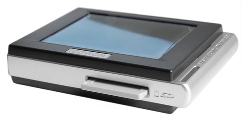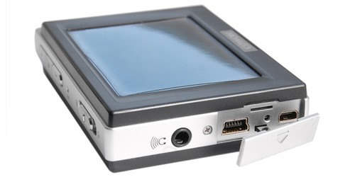Дизайн/ИсполнениеПервое, что обращает на себя внимание, это дисплей, так как глядя на плеер мы практически больше ничего и не видим, разве что логотип производителя, размещенный в нижней части рамки из матового черного (в нашем экземпляре) пластика. Экран имеет размер в 2,5 дюйма (~63,5 мм) по диагонали и разрешение 320×240 пикселей, способен отображать 16 млн. цветов. Он сенсорный, выполнен по резистивной технологии. Цвета насыщенные. За счет разрешения при такой диагонали картинка гладкая и четкая. На солнце экран заметно слепнет, но благодаря отражающей подложке информация остается читабельной.