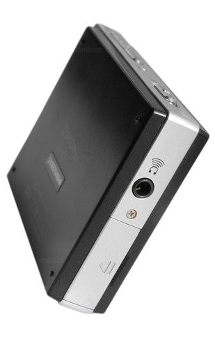 Всю лицевую часть занимает дисплей. На верхнем торце расположены 4 аппаратные кнопки, одна из которых трехпозиционная. На нижнем торце размещен слот для SD/SDHC-карт памяти, закрытый заглушкой. На левом боку находится 3,5-миллиметровый разъем для наушников. Под откидывающейся крышечкой спрятаны кнопка сброса, miniUSB-порт и разъем для подключения кабеля линейного входа и ТВ-выхода. Стоит отметить, что хоть плеер и собран на платформе, которая поддерживает USB Host, в данном случае эта функция не реализована. Так что искать кабель, который позволит подключить к проигрывателю внешний накопитель или другие USB-устройства, не имеет смысла.