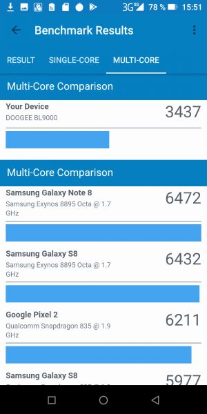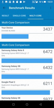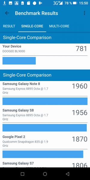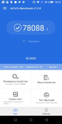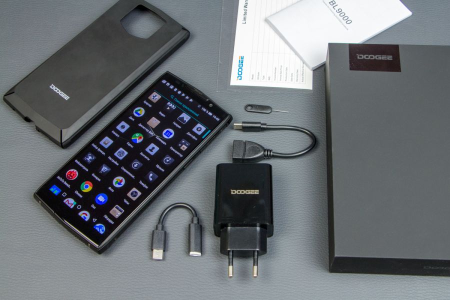 Обзор DOOGEE BL9000: производительный смартфон с беспроводной зарядкой и NFC!Редакция портала Smartphone.ua очень ждала на обзор и хотела попробовать вживую смартфон DOOGEE BL9000, так как производитель укомплектовал эту трубку всеми без исключения современными технологиями и большой батареей. Что из этого получилось и стоит ли платить за BL9000 $269.99 узнаете из обзора. Комплект поставки Именно с комплектации нужно начать обзор, ведь с покупкой смартфона пользователю не нужно будет докупать сопутствующих аксессуаров. Во-первых, в большой черной коробке упакован жесткий чехол из софт-тач пластика, который плотно сидит на корпусе, не делает его толще и смотрится очень красиво. Во-вторых, комплектацией предусмотрен USB Type-C/USB переходник для подключения флеш накопителей и других смартфонов. Последнее нужно в том случае, если хотите поделиться зарядом с другими мобильными гаджетами. Еще в коробке находится скрепка, защитная пленка с салфеткой, а также переходник 3,5 мм/USB Type-C. Из проводов присутствует «мощный» кабель USB-USB Type-C и увесистое зарядное устройство 5В/5А. Зачем производитель выбрал такое ЗУ расскажем далее. Дизайн и Корпус На лицевой стороне DOOGEE BL9000 нет никаких опознавательных знаков и понять, что это за трубка, получается не у всех. Всю лицевую панель заняло 2,5D стекло с треугольным скосом внизу и прорезью под динамик сверху. Металлическая вставка немного приподнята над дисплеем и этим уберегает экран от появления царапин. BL9000 выглядит дорого. Черный приятный софт-тач пластик и пластик под кожу на тыльной стороне не дают усомниться в том, что как для китайца - это очень и очень сильная подача. Практичным людям, которые предпочитают бизнес стиль, внешность понравится. Корпус не разбирается. Слот для карт расположен слева, кнопки - справа, внизу отверстия под динамик, а между ними USB Type-C порт. Мультимедийный динамик выполнен в спаренном формате, так солиднее смотрится, хотя функционально левая ниша выполняет функцию декора. Микрофон разместили на стыке дисплея и торца, так что звук не теряется, и собеседник слышит вас хорошо. Обсуждать габариты (162,7х78,1х13,8 мм) и вес (275 г) BL9000 особо не нужно. Все и так понятно с первого взгляда. Управление одной рукой проблематично, но принять звонок можно. Клавиши на торце плоские и удобные. Они не сильно выступают, но нажимаются удобно. Сканер отпечатка пальцев находится на тыльной крышке и окружен металлической площадкой. На него можно добавить дополнительные функции, например, ответ на звонки или «Назад». Он срабатывает быстро и его не трудно быстро найти пальцем. В целом корпус красивый и практичный, а сборка у BL9000 без нареканий. Дисплей У модели DOOGEE BL9000 экран с соотношением сторон 18:9 от LG. Это IPS матрица на 5,99 дюймов с Full HD+ разрешением (1080х2160). Плотность пикселей на дюйм составляет 260 ppi (480 dpi по Antutu). Мультитач поддерживает 10 одновременных касаний. Олеофобное покрытие идеальное, наверное, лучшее из всех, что ранее видели на смартфонах DOOGEE. За время теста экран не насобирал царапин, так что защита у стекла присутствует. Особо бережные могут наклеить защитную пленку из комплекта поставки. Запас яркости у дисплея хороший, углы обзора без нареканий. Опция «Защита глаз» присутствует. А вот настроить под себя баланс белого и контрастность возможности нет. Размер шрифта и масштаб изображения можно менять. На солнце дисплей не в