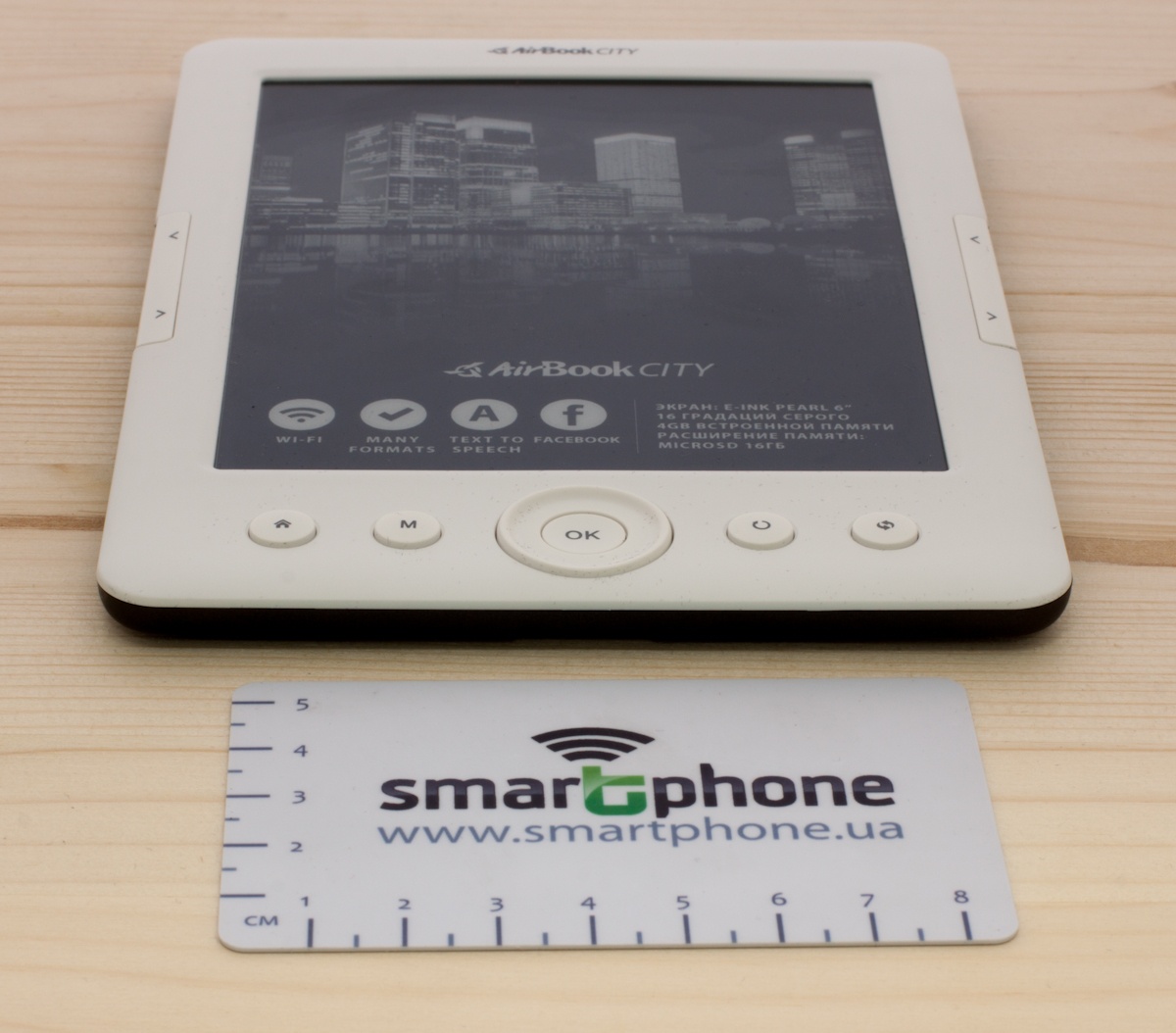 AirBook City – ридер, который может похвастаться поддержкой более 20 текстовых форматов, работой с таблицами Excel, презентациями Power Point, а также архивами Zip и RAR. Помимо этого в наличии модуль Wi-Fi, аудиоразъем и функция «Чтение текста вслух». Что ж, проверим, как эти и многие другие функции ридера покажут себя в деле.