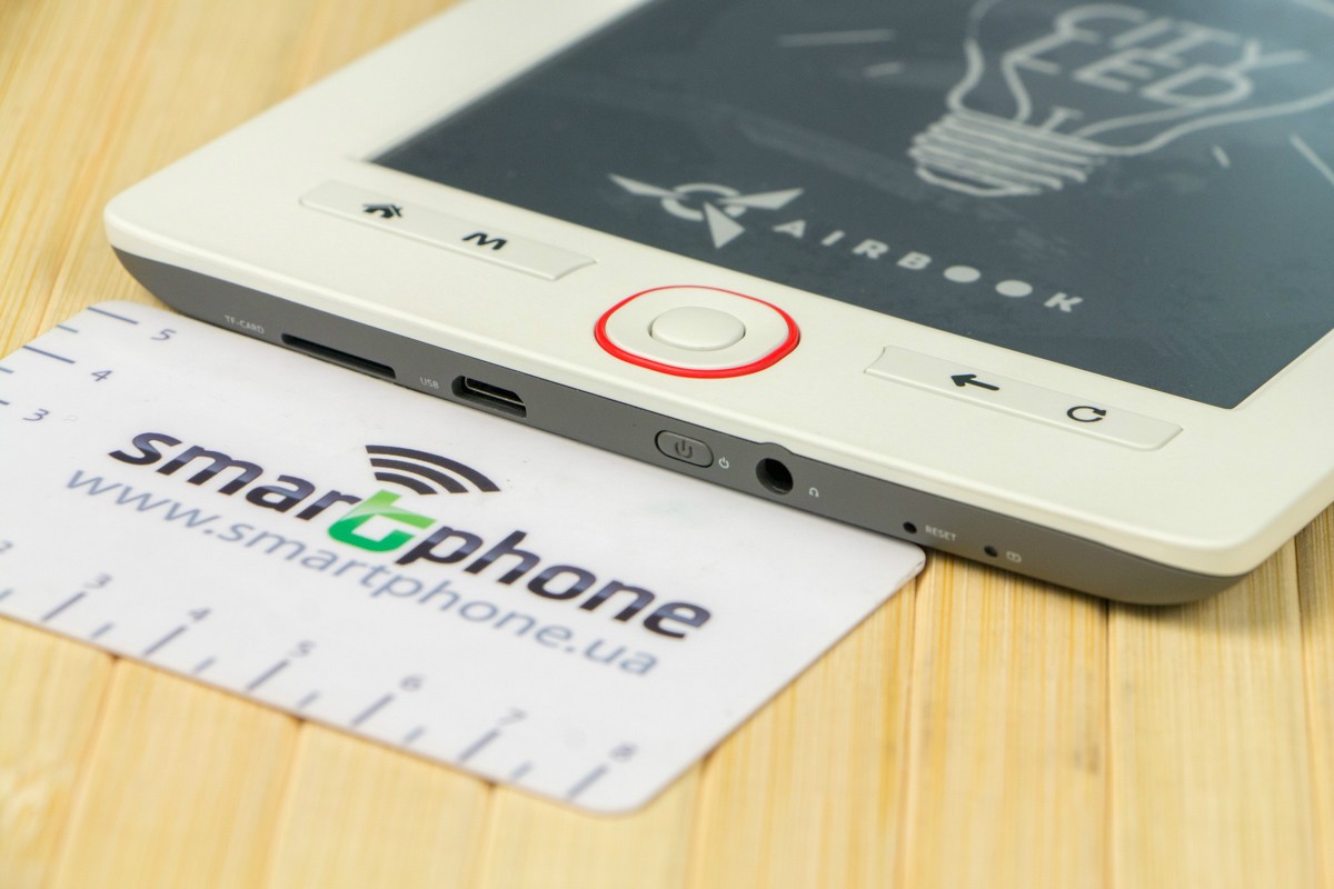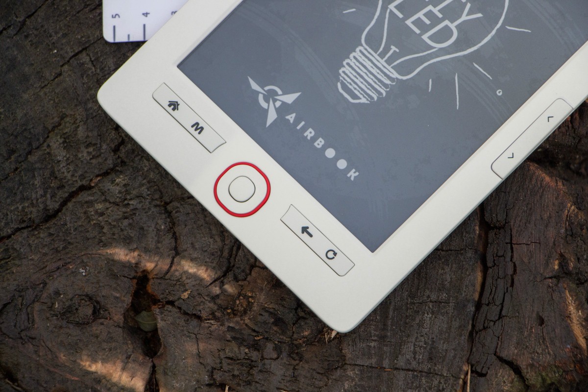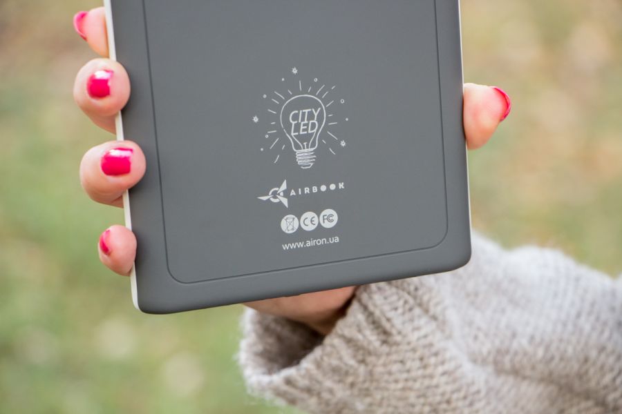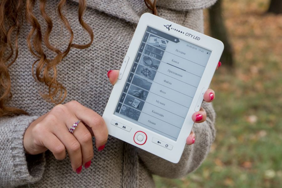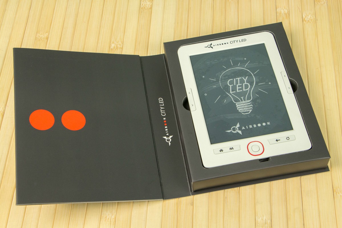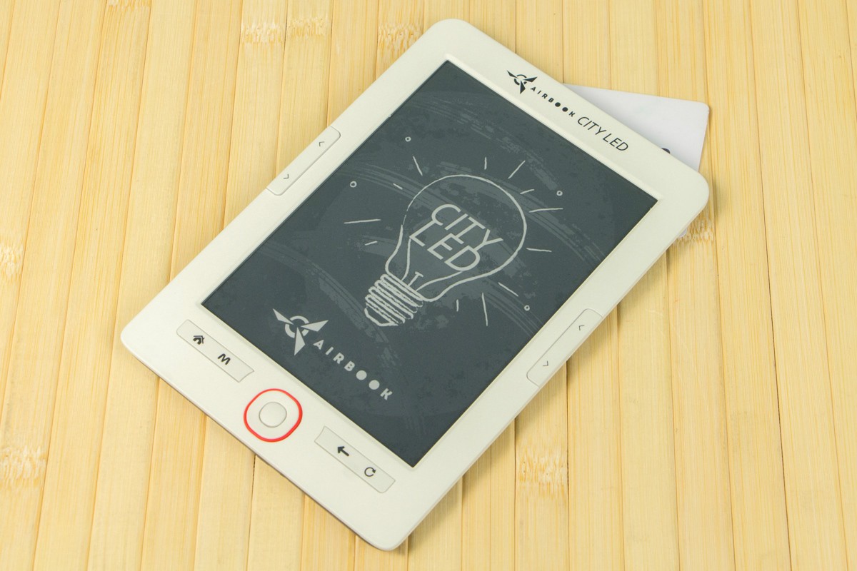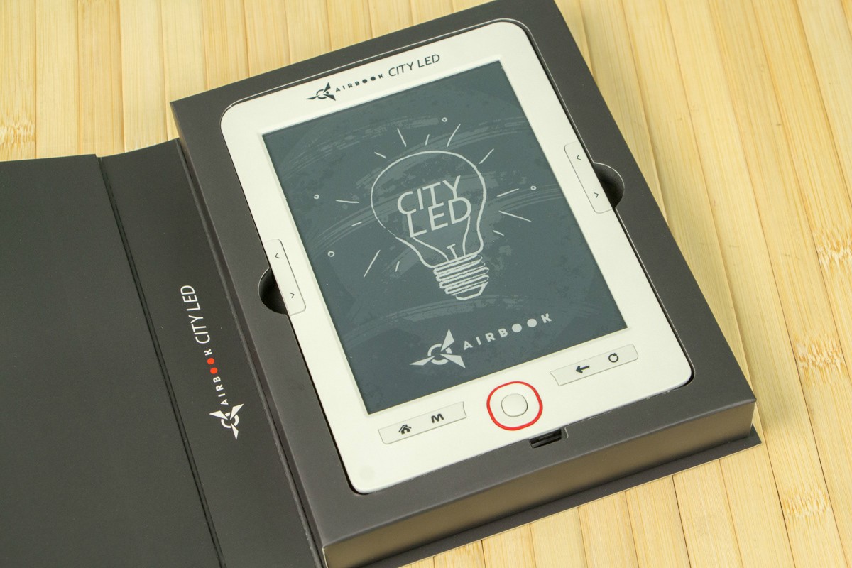 Обзор электронной книги AirBook City LEDРидер AirBook City LED получил 6-дюймовый E-Ink Pearl дисплей c подсветкой, аккумулятор на 1500 мАч, поддержку аудио и большого количества текстовых форматов, а также полностью механическое управление. Хватит ли всего этого 96-долларовой модели, чтобы «переманить» пользователей с сенсорных Kindle и Nook, а кого и подавно с бумажных текстов на электронные, будем разбираться в обзоре. Комплект поставкиВсегда приятно брать в руки новинки, особенно в том случае, если производитель с вниманием подошел ко всем деталям, в том числе и упаковке. В нашем случае девайс поставляется в стильной картонной коробке выдвижного типа, на фронтальную часть которой нанесено изображение AirBook City LED, а на тыльную его спецификации. И коробка красивая, и внутри все разложено по своим местам: ридер, кабель для подзарядки, инструкция, гарантийный талон и открытка с благодарностью за покупку. Последнюю выбрасывать не стоит, так как она дает вам дополнительные месяца гарантии и 100 гривен скидки на последующие покупки в официальном магазине производителя. Например, можно прикупить чехол. Дизайн и функциональные элементыТестируемая модель оказалась не только симпатичной внешне, но и очень дружелюбной в плане подбора материалов и тактильных ощущений. Производителем использован софт-тач пластик. На лицевой стороне он в цвет топленного молока, можно даже сказать, что молочно-серый. На тыльной – темно-серый, так что отпечатки и грязь на ней почти не заметны. Верхняя и нижняя крышки очень плотно прилегают друг к другу, зазоры между панелями отсутствуют. Поэтому не только материалы корпуса, но и качество сборки устройства оставляет приятное впечатление – ничего не скрипит и не люфтит. Книгу удобно держать в руках, в том числе и одной, не только благодаря практически нескользящему пластику, но и небольшим как для 6-дюймового ридера габаритам - 164х116х8.6 мм при весе 160 грамм. Экран у AirBook City LED не сенсорный, поэтому на его лицевой части так много клавиш управления. Внизу по центру, например, обустроен 4-х позиционный джойстик с ярко-красной рамкой и кнопкой подтверждения по центру. Он служит для навигации в направлениях «Вперед», «Назад», «Влево» и «Вправо». Слева от него находятся спаренные механические кнопки «Домой» и «Меню», а справа - «Возврата» и «Перезагрузки страницы»/«Включение подсветки». Все разъемы вынесены на нижний торец: cлот для карт памяти microSD, порт micro-USB, 3.5 мм аудиовыход. Здесь же расположена клавиша питания, кнопка Reset и LED-индикатор уровня заряда батареи. Кнопки перелистывания страниц размещены по середине правого и левого края книги, так что левша вы или правша - роли не играет. Все клавиши нажимаются легко с бесшумным щелчком. Возможно, полностью механическое управление не лучший вариант для современного ридера, тем не менее предпочтительнее полностью сенсорному - не всегда будешь грязными руками к экрану прикасаться, а вот к кнопке аккуратно еще можно. С другой стороны, недостаток исключительно кнопочного в том, что все настройки книги занимают больше времени. Экран6-дюймовый экран AirBook City LED изготовлен по технологии E-ink Pearl и имеет высокое разрешение 1024x758 точек. Таким образом, для того чтобы рассмотреть мелкие детали в файлах PDF или DjVu, необходимости сильно увеличивать масштаб нет. Возможность чтения в полной темноте или при плохом освещ