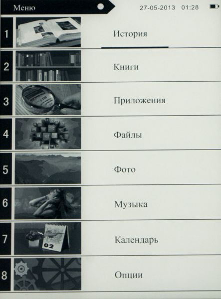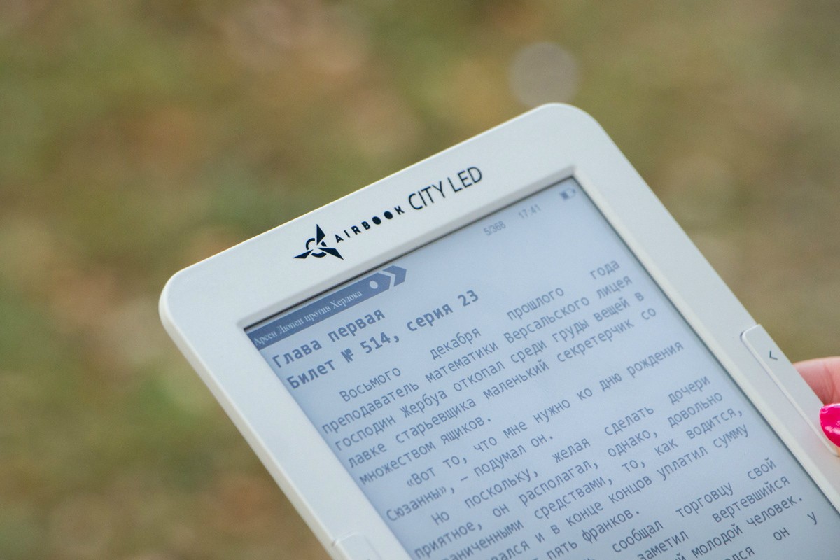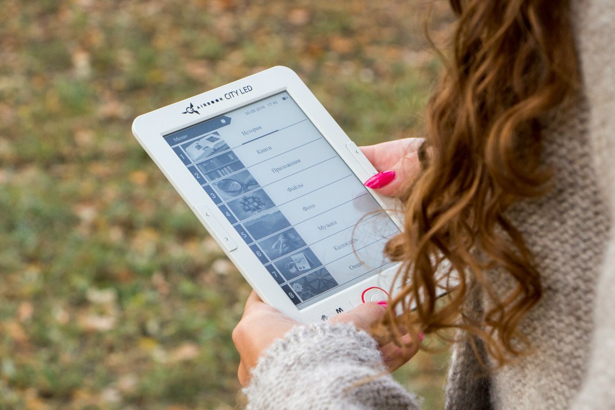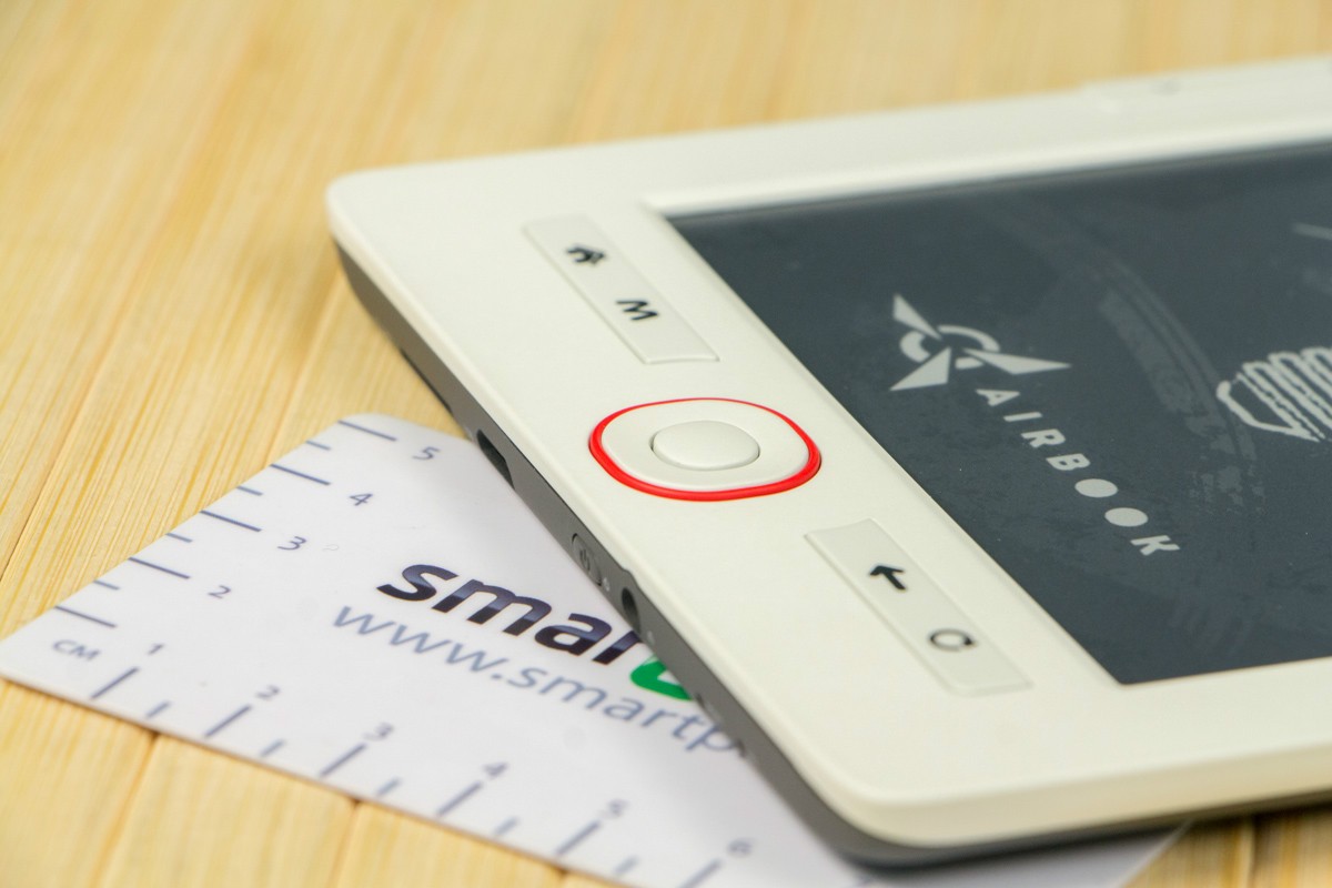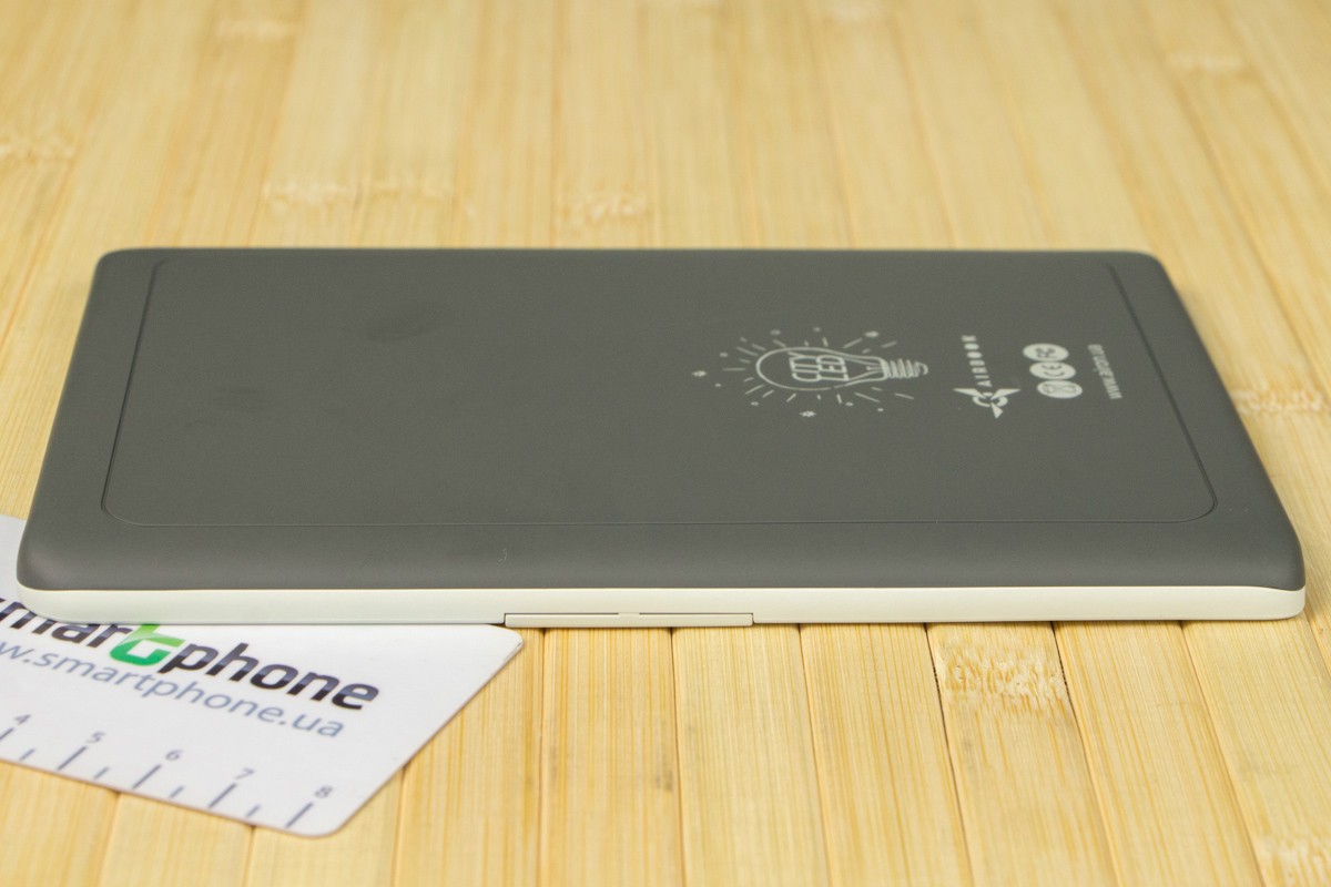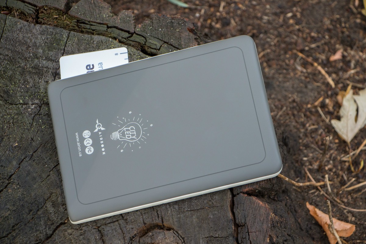 Обзор электронной книги AirBook City LEDРидер AirBook City LED получил 6-дюймовый E-Ink Pearl дисплей c подсветкой, аккумулятор на 1500 мАч, поддержку аудио и большого количества текстовых форматов, а также полностью механическое управление. Хватит ли всего этого 96-долларовой модели, чтобы «переманить» пользователей с сенсорных Kindle и Nook, а кого и подавно с бумажных текстов на электронные, будем разбираться в обзоре. Комплект поставкиВсегда приятно брать в руки новинки, особенно в том случае, если производитель с вниманием подошел ко всем деталям, в том числе и упаковке. В нашем случае девайс поставляется в стильной картонной коробке выдвижного типа, на фронтальную часть которой нанесено изображение AirBook City LED, а на тыльную его спецификации. И коробка красивая, и внутри все разложено по своим местам: ридер, кабель для подзарядки, инструкция, гарантийный талон и открытка с благодарностью за покупку. Последнюю выбрасывать не стоит, так как она дает вам дополнительные месяца гарантии и 100 гривен скидки на последующие покупки в официальном магазине производителя. Например, можно прикупить чехол. Дизайн и функциональные элементыТестируемая модель оказалась не только симпатичной внешне, но и очень дружелюбной в плане подбора материалов и тактильных ощущений. Производителем использован софт-тач пластик. На лицевой стороне он в цвет топленного молока, можно даже сказать, что молочно-серый. На тыльной – темно-серый, так что отпечатки и грязь на ней почти не заметны. Верхняя и нижняя крышки очень плотно прилегают друг к другу, зазоры между панелями отсутствуют. Поэтому не только материалы корпуса, но и качество сборки устройства оставляет приятное впечатление – ничего не скрипит и не люфтит. Книгу удобно держать в руках, в том числе и одной, не только благодаря практически нескользящему пластику, но и небольшим как для 6-дюймового ридера габаритам - 164х116х8.6 мм при весе 160 грамм. Экран у AirBook City LED не сенсорный, поэтому на его лицевой части так много клавиш управления. Внизу по центру, например, обустроен 4-х позиционный джойстик с ярко-красной рамкой и кнопкой подтверждения по центру. Он служит для навигации в направлениях «Вперед», «Назад», «Влево» и «Вправо». Слева от него находятся спаренные механические кнопки «Домой» и «Меню», а справа - «Возврата» и «Перезагрузки страницы»/«Включение подсветки». Все разъемы вынесены на нижний торец: cлот для карт памяти microSD, порт micro-USB, 3.5 мм аудиовыход. Здесь же расположена клавиша питания, кнопка Reset и LED-индикатор уровня заряда батареи. Кнопки перелистывания страниц размещены по середине правого и левого края книги, так что левша вы или правша - роли не играет. Все клавиши нажимаются легко с бесшумным щелчком. Возможно, полностью механическое управление не лучший вариант для современного ридера, тем не менее предпочтительнее полностью сенсорному - не всегда будешь грязными руками к экрану прикасаться, а вот к кнопке аккуратно еще можно. С другой стороны, недостаток исключительно кнопочного в том, что все настройки книги занимают больше времени. Экран6-дюймовый экран AirBook City LED изготовлен по технологии E-ink Pearl и имеет высокое разрешение 1024x758 точек. Таким образом, для того чтобы рассмотреть мелкие детали в файлах PDF или DjVu, необходимости сильно увеличивать масштаб нет. Возможность чтения в полной темноте или при плохом освещ