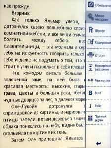 Второй раздел – это так называемый «Основной раздел». Отсюда пользователь получает доступ ко всем функциями ридера – возможности чтения, воспроизведения МР3 и многое другое. Подпункты этого раздела это: "Книги", "Изображения", "Музыка", "Журнал", "Проводник", "Установки", "Инструкции", а также подпункт "Выключить". Настройки ImBook 0411Все возможные настройки ридера Навигатор Impression ImBook 0411 сосредоточены только в одном подпункте главного меню «Установки». Перейдя сюда, пользователь получает возможность восстановить заводские установки по умолчанию, выполнить калибровку дисплея, настроить режим сна, выбрать язык интерфейса, форматировать как встроенную память, так и внешнюю и прочее. ![]() ![]() Чтение ![]() ![]() Если перейти в каталог «Название», слева можно увидеть небольшую эмблему, на которой отображен формат конкретной книги. В самом же низу раздела «Книги» находится специальная техническая строчка, на теле которой расположено несколько ярлыков активации той или иной задачи. Справа на лево – это ярлык, отвечающий за изменения расположения книг в каталоге (с расположения в формате лесенки, установленного производителем по умолчанию, на расположение в формате обложек). Далее идет кнопка поиска, два кнопки с характерными на них стрелками, отвечающие за перелистывание каталога и пр.