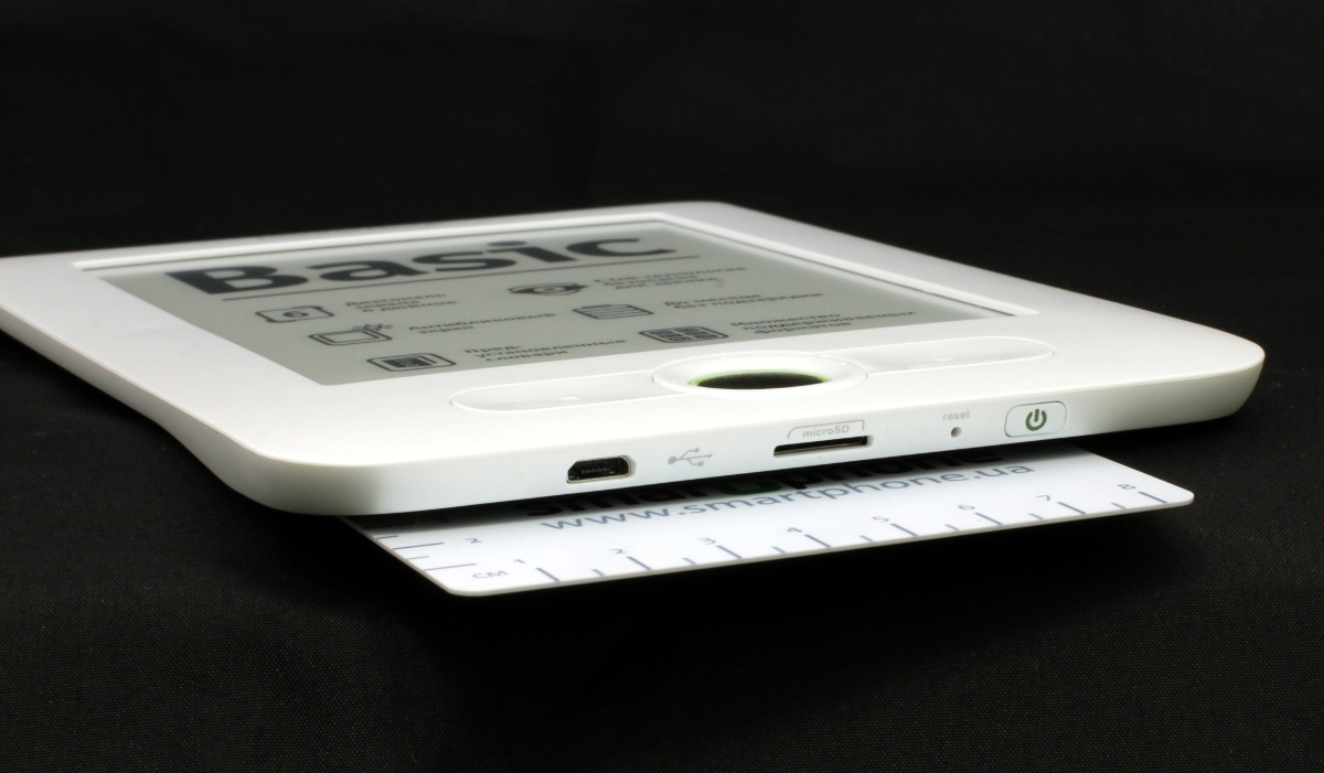 На сегодняшний день большинство электронных книг, в том числе таких производителей как Barnes & Noble, Amazon, Kobo обладают похожим дизайном, что нельзя сказать об устройствах компании Pocketbook, у которых своя неповторимая внешность. Вот и ридер PocketBook Basic New, который попал к нам на тест, обладает элегантным и интересным внешним видом. Привлекательность ему придают его формы, острых углов устройство не имеет — все грани скруглены. А белый цвет корпуса делает его внешность более изысканной.